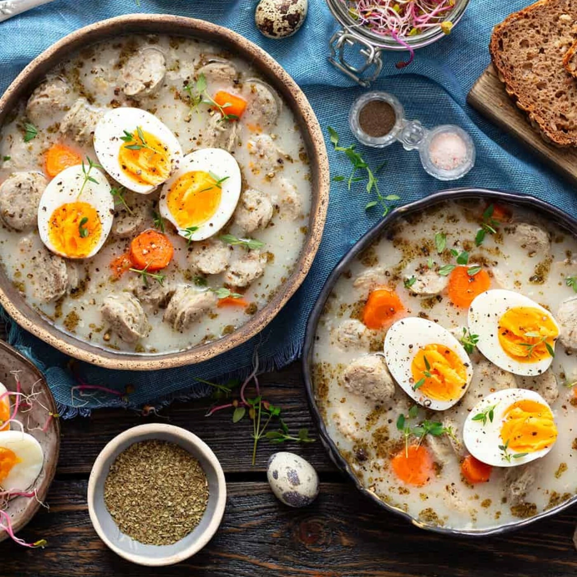 Tradycyjna, lekko kwaśna zupa przygotowywana z naturalnego zakwasu.