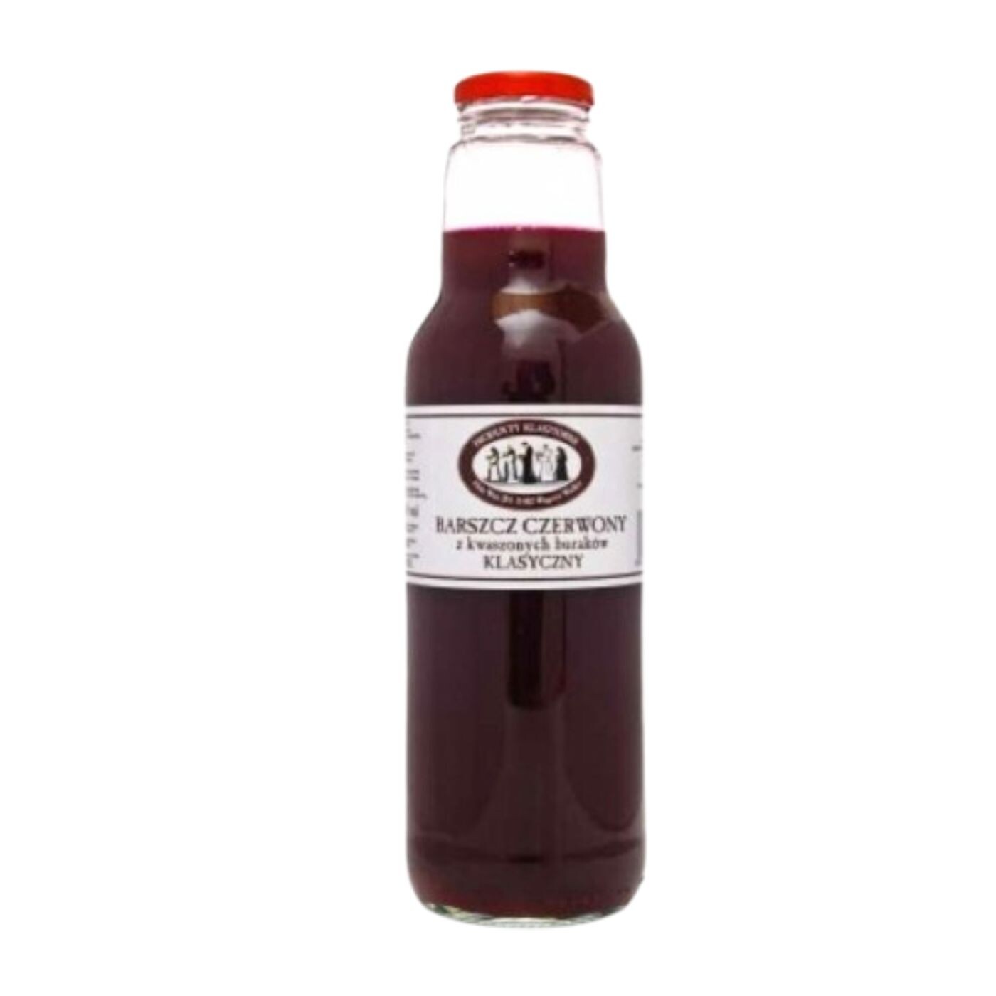 Barszcz czerwony z kwaszonych buraków klasyczny to intensywny, lekko kwaskowy napój o gęstej konsystencji i wyraźnym aromacie fermentacji, który świetnie gasi pragnienie i jest bazą do potraw. Ten produkt to źródło witamin i minerałów, takich jak witamina C, kwas foliowy, potas i żelazo, które wspierają odporność i metabolizm. Dzięki procesowi fermentacji zachowuje naturalne mikroorganizmy, które wspomagają trawienie i przyswajanie składników odżywczych. Smak można wzbogacić świeżo mielonym pieprzem, odrobiną soku z cytryny lub czarną rzepą, a także podawać na ciepło lub schłodzony. Doskonale komponuje się z uszkami, pierogami, krokietami, jajkiem na twardo czy zakąskami, a także może służyć jako baza do klasycznej zupy - barszczu.
