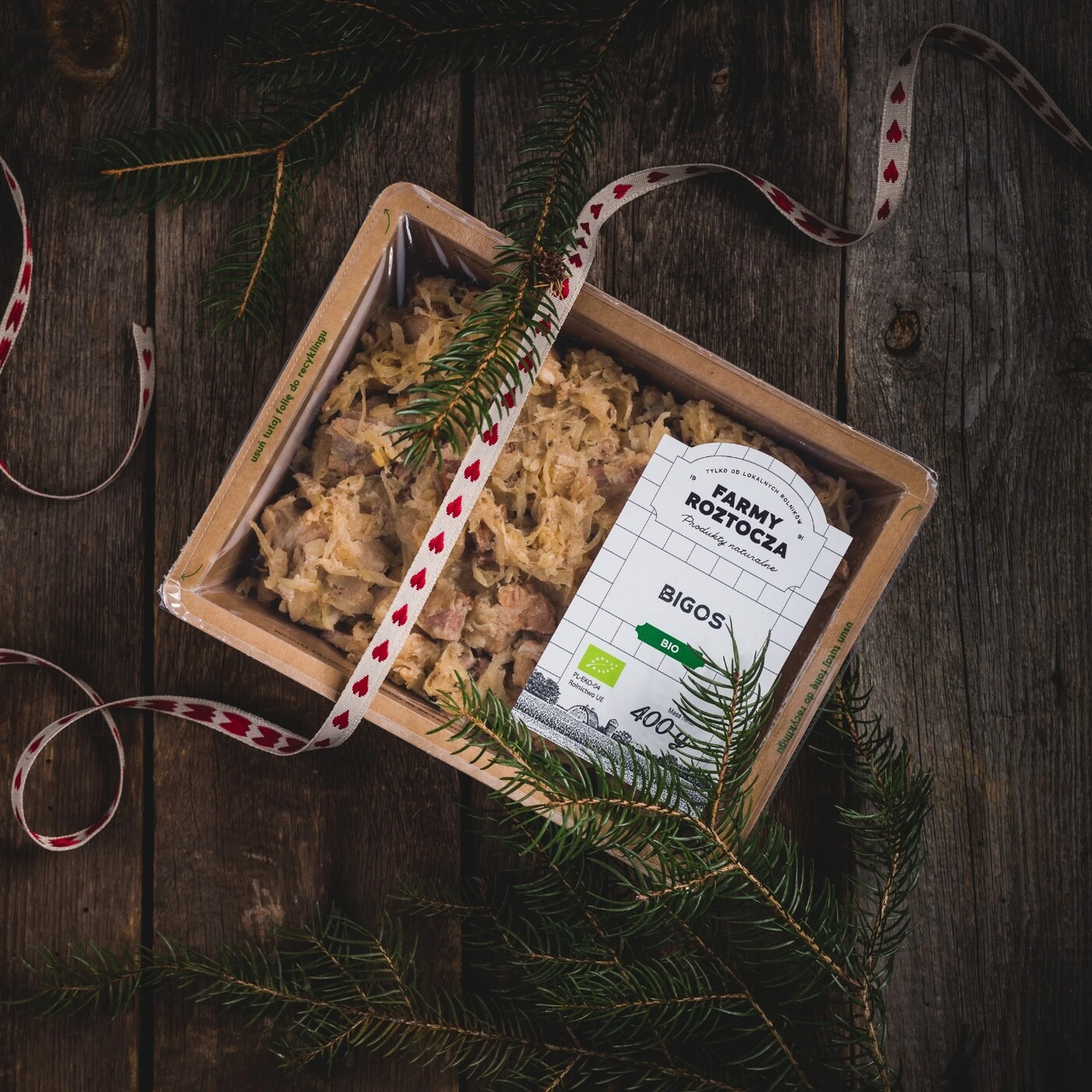 Bigos Bio to tradycyjne polskie danie, pełne głębokiego smaku i aromatu, przygotowane z najwyższej jakości składników ekologicznych. Bigos BIO powstaje na bazie kiszonej kapusty, świeżych warzyw oraz starannie dobranych przypraw. Dzięki długiemu gotowaniu wszystkie smaki idealnie się przenikają, tworząc wyjątkowo intensywną i bogatą kompozycję. To doskonały wybór dla miłośników tradycyjnej kuchni w zdrowej, ekologicznej odsłonie.