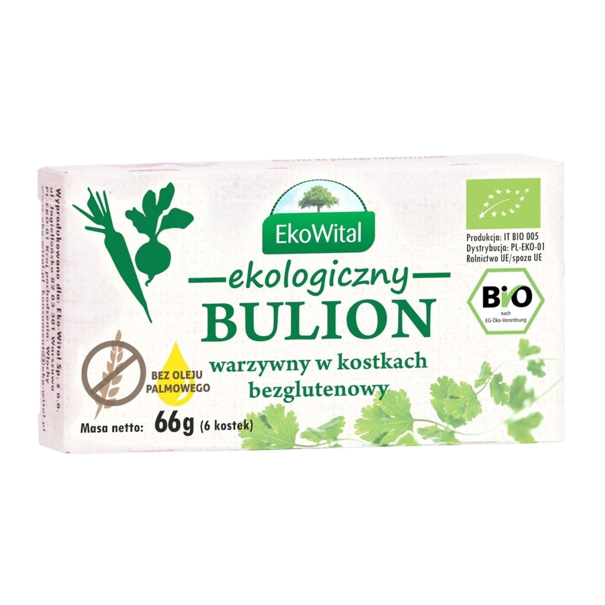 Bulion warzywny w kostkach bez drożdży, bez oleju palmowego, bezglutenowy BIO to doskonały wybór dla osób ceniących naturalny smak i czysty skład. Wyprodukowany z warzyw pochodzących z certyfikowanych upraw ekologicznych, nie zawiera drożdży, oleju palmowego ani glutenu. Idealny do zup, sosów, dań warzywnych i wegetariańskich. Delikatny, a zarazem aromatyczny, świetnie sprawdzi się w kuchni osób na diecie bezglutenowej i tych, którzy unikają zbędnych dodatków w żywności.