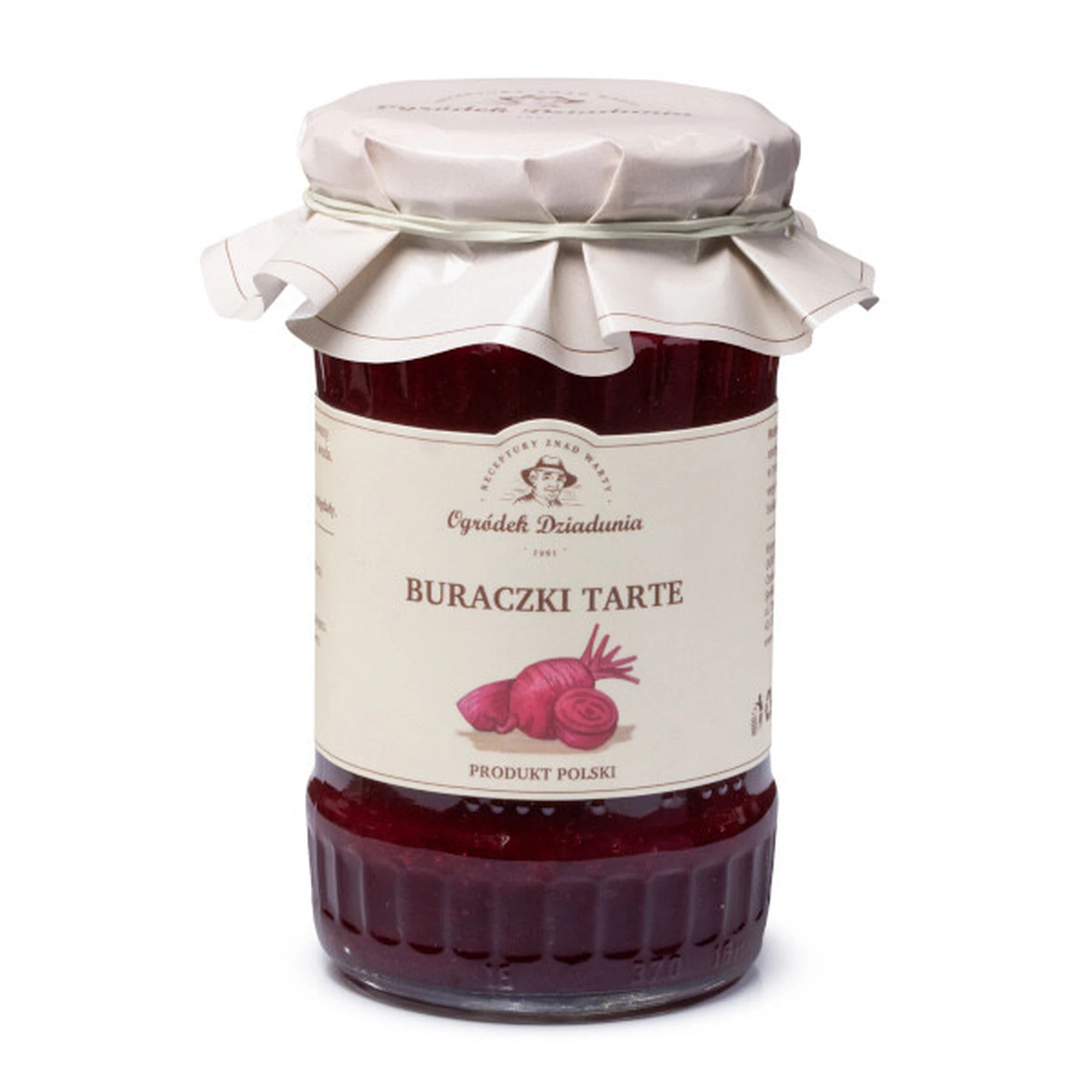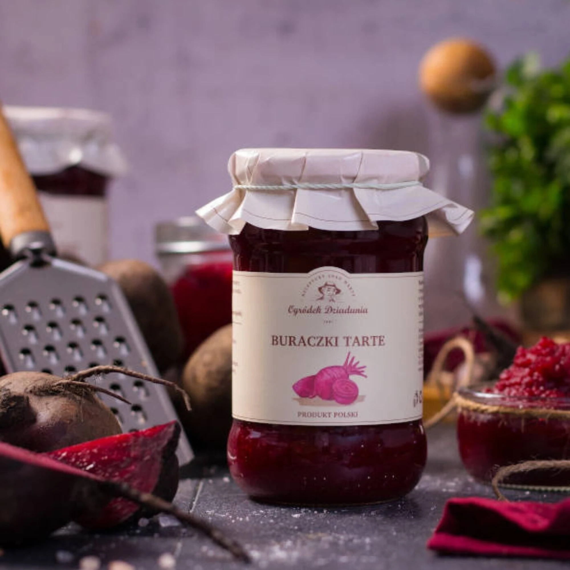 Buraczki tarte to niskokaloryczny, zdrowy dodatek do wielu tradycyjnych dań. Zaledwie 38 kcal na 100 g sprawia, że świetnie sprawdzą się w diecie. Pasują do kotletów mielonych, klusek śląskich czy kaczki. Doskonale smakują podane na ciepło lub zimno, zachwycają prostym, naturalnym smakiem. Buraczki nie zawierają sztucznych dodatków ani barwników, co czyni je bezpiecznymi nawet dla kobiet w ciąży oraz dla dzieci. Buraczki są bogate w witaminy A, B, C oraz minerały, takie jak wapń i magnez, co czyni je cennym składnikiem zdrowej diety. Idealne do przygotowania szybkich, pysznych posiłków w każdej chwili.