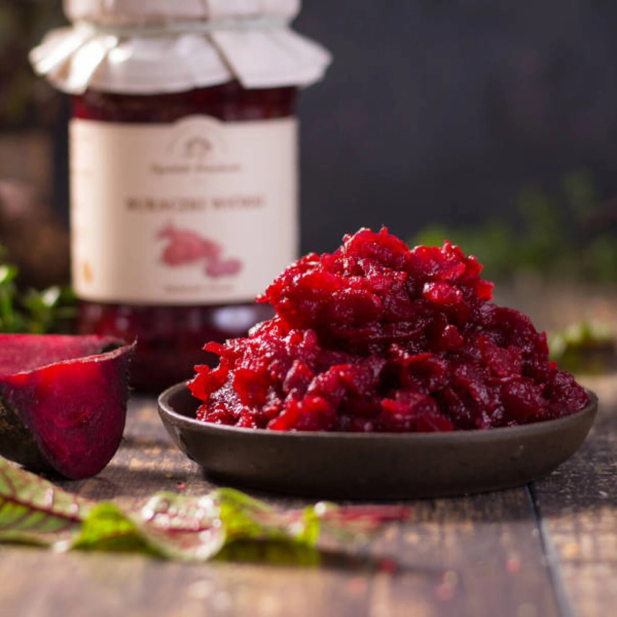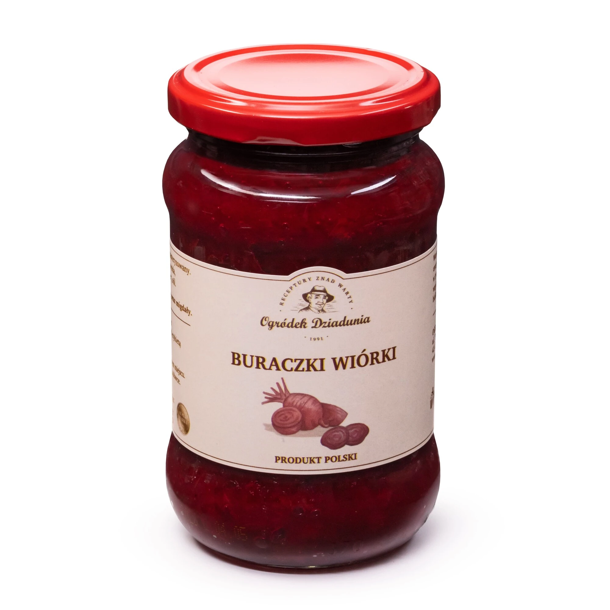 Buraczki wiórki to doskonały dodatek do obiadu. Ich konsystencja i słodko-kwaśna zalewa idealnie komponują się z tradycyjnymi daniami, takimi jak kotlety czy kluski, ale także z nowoczesnymi przepisami. Wiórki świetnie sprawdzą się w surówkach, sałatkach lub zapiekankach, doskonale smakują zarówno na ciepło, jak i na zimno. Receptura bazuje na prostocie, bez sztucznych barwników i konserwantów. Dzięki odpowiednim proporcjom buraków i zalewy, buraczki smakują jak te przygotowane w rodzinnym domu.