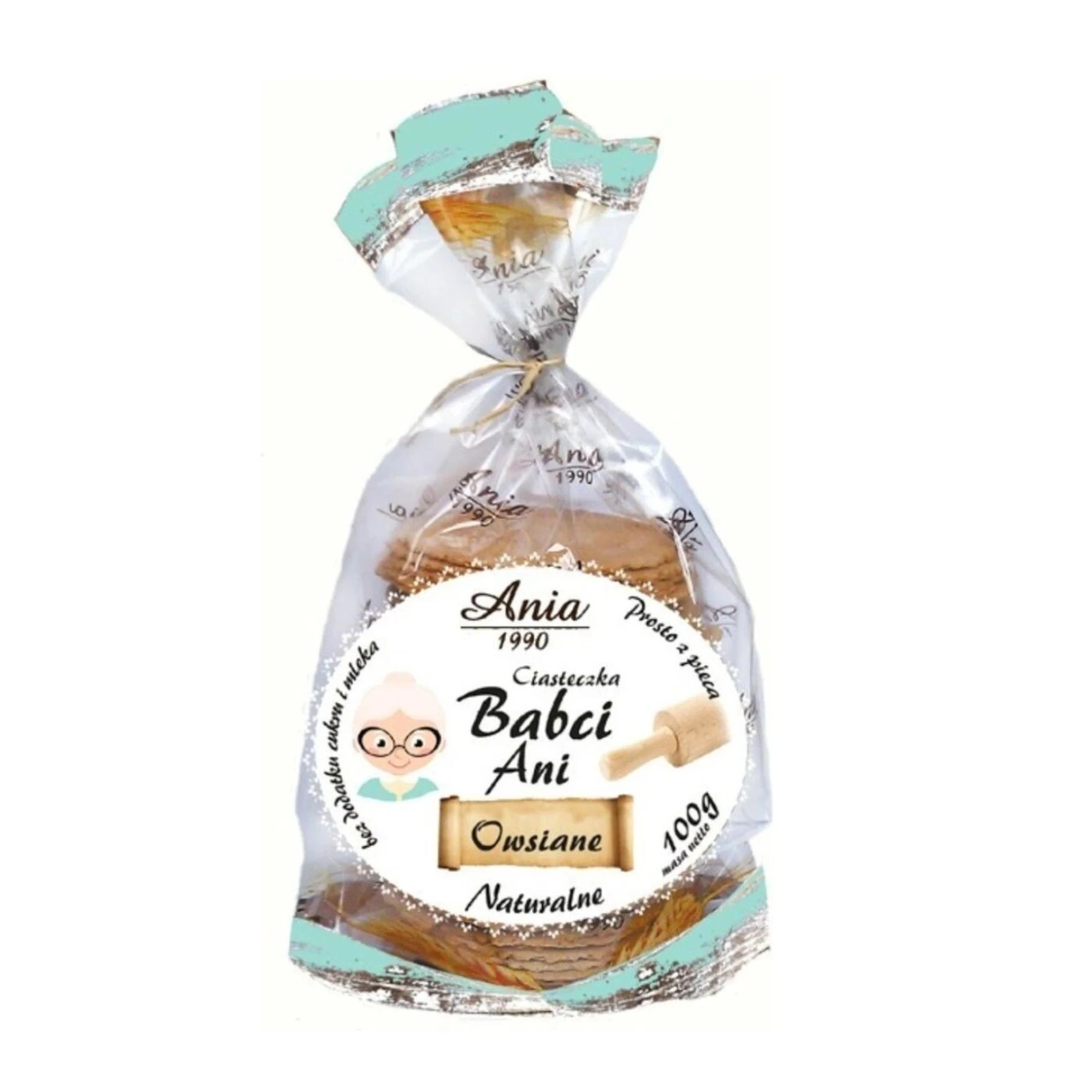 Ciasteczka Babci Ani owsiane to wypiek z fermentowanego ciasta, przygotowany bez mleka, bez jajek i bez dodanych substancji słodzących. Dzięki fermentacji zyskują subtelny, lekko kwaskowy posmak i chrupiącą, naturalnie bogatą w wartości odżywcze teksturę. W składzie dominują pełnoziarniste płatki owsiane, źródło błonnika, magnezu i potasu, co wspiera utrzymanie energii i dobrego samopoczucia. Produkt jest całkowicie wegański i bez laktozy, dzięki czemu nadaje się do diety osób unikających mleka i jaj. Zawartość błonnika wspomaga długotrwałe nasycenie, a witaminy z grupy B wspierają metabolizm energetyczny i ogólną kondycję. Najlepiej smakują same lub z roślinnym serkiem, hummusem, pastą orzechową oraz świeżymi owocami na śniadanie lub jako przekąska. Z tego produktu można także przygotować prosty spód do tarty bez cukru dodanego, crumble do pieczonych owoców lub dodać chrupiącą bazę do deserów na bazie roślinnych składników.