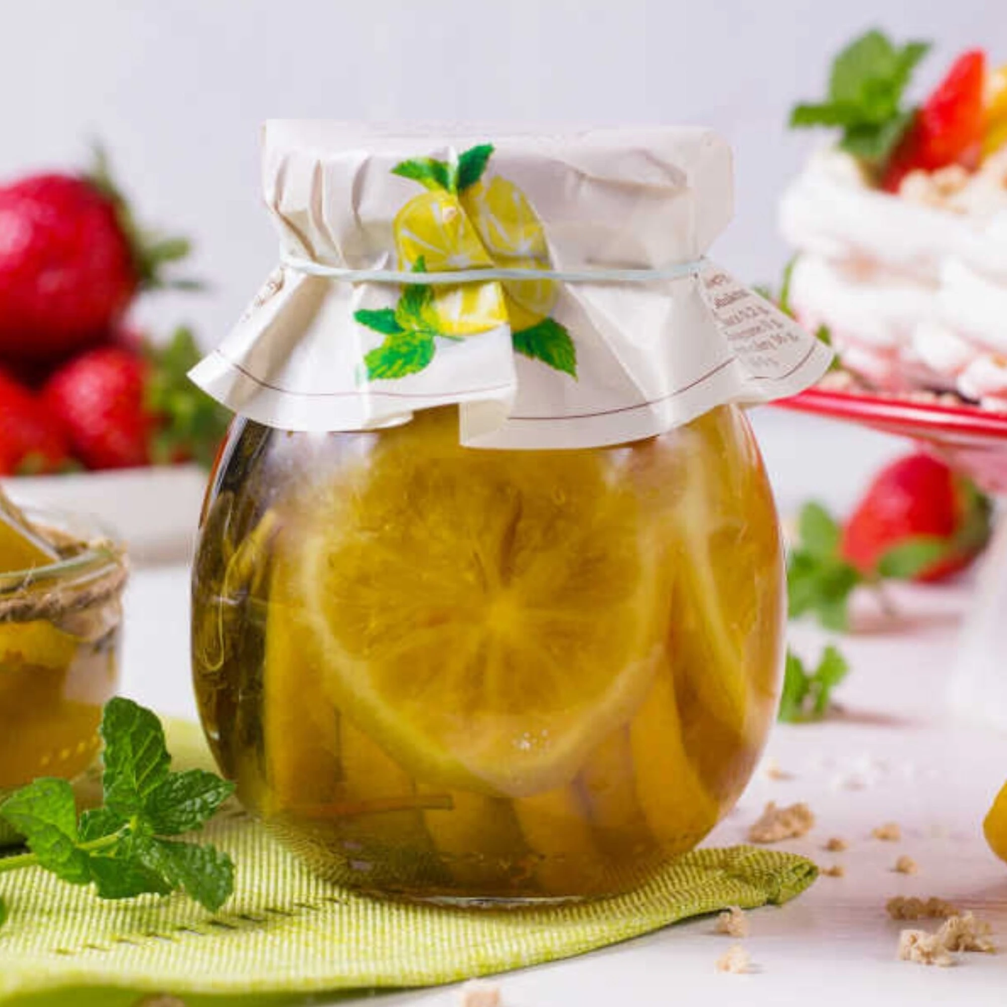 Plastry świeżych cytryn zanurzone w słodkim syropie z dodatkiem rumu to idealny dodatek do napojów i deserów.