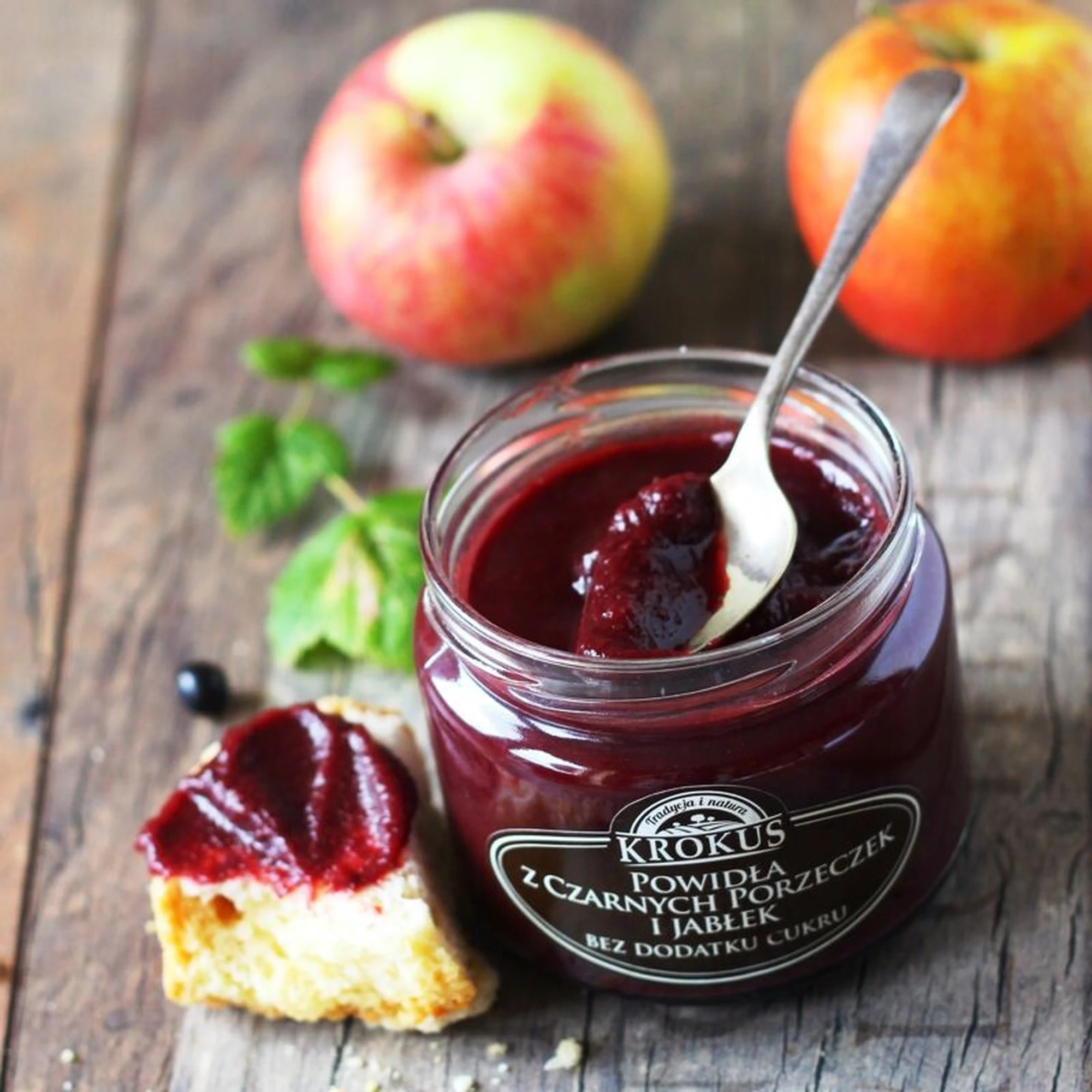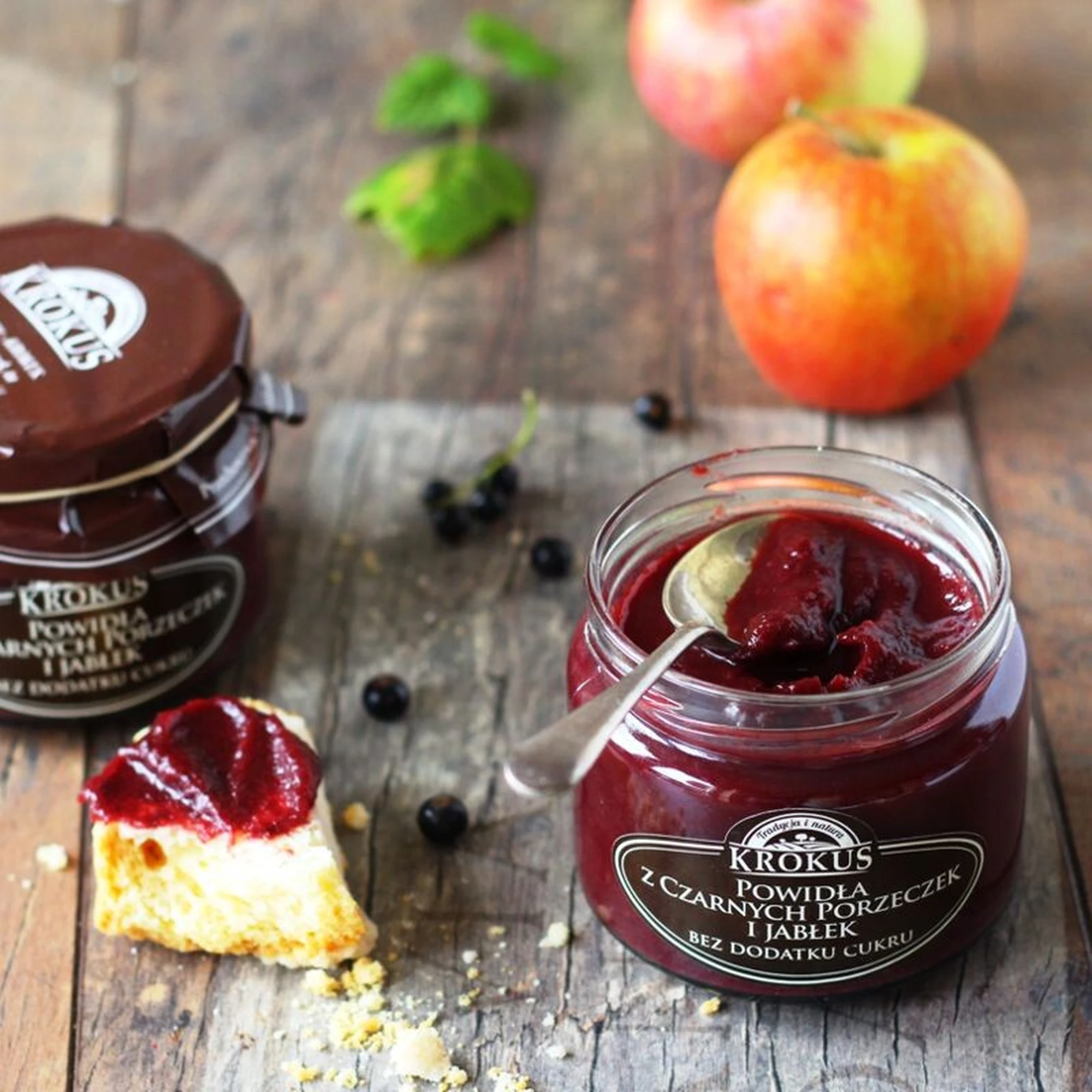 Powidła z czarnej porzeczki i jabłek bez dodatku cukru to wyjątkowe połączenie intensywnego, lekko kwaskowatego smaku porzeczek i naturalnej słodyczy jabłek. Dzięki powolnemu gotowaniu owoce zachowują swoje cenne wartości odżywcze i bogaty aromat. Produkt nie zawiera dodatku cukru, konserwantów ani sztucznych barwników, co czyni go doskonałym wyborem dla osób dbających o zdrową dietę. Idealne jako dodatek do pieczywa, owsianek, naleśników, deserów czy serów. Naturalna owocowa esencja zamknięta w słoiku!