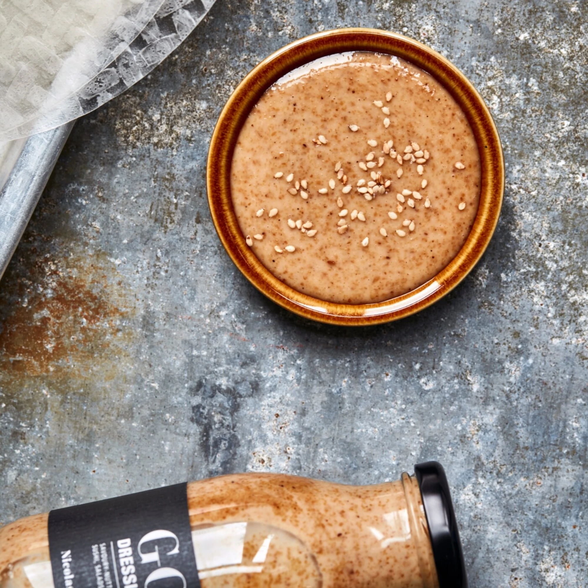 Dressing sezamowo sojowy to wyjątkowy, kremowy sos, który zmienia zwykłe dania w kulinarne przyjemności. Wyrazisty smak prażonego sezamu idealnie łączy się z delikatną nutą czosnku i sojowego umami, tworząc harmonijną kompozycję idealną do różnorodnych zastosowań. Świetnie sprawdza się nie tylko jako klasyczny dodatek do sałatek, ale również jako baza do marynat czy dip do warzyw i pieczywa. Ten dressing to szybki sposób na podniesienie smaku każdej potrawy bez wysiłku.