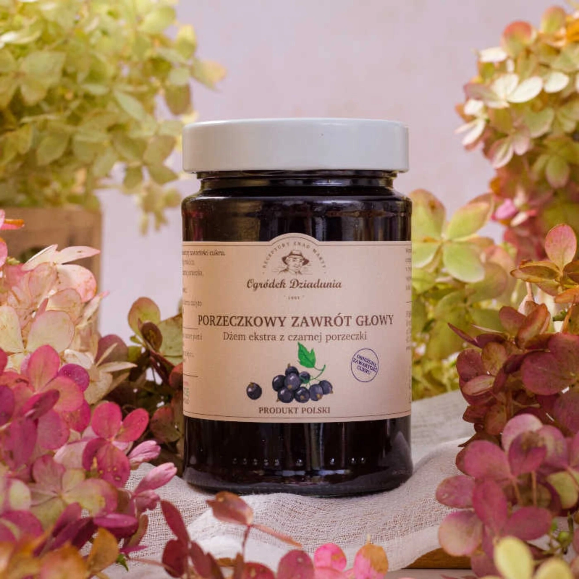 Dżem porzeczkowy – Porzeczkowy Zawrót Głowy intensywnie owocowy, lekko kwaskowy i naturalnie pyszny – nasz dżem z czarnej porzeczki to doskonały wybór dla wszystkich miłośników zdrowych, naturalnych smaków. Dzięki obniżonej zawartości cukru możesz delektować się jego wyjątkowym smakiem bez obaw o nadmiar kalorii. Każda łyżeczka to bogactwo dojrzałych porzeczek, które nie tylko zachwycają aromatem, ale także dostarczają cennych witamin i antyoksydantów. Dżem doskonale sprawdzi się zarówno w klasycznych, jak i nowoczesnych kulinarnych eksperymentach. Możesz posmarować nim pieczywo, dodać do naleśników, ciast, tart czy deserów. Wzbogać nim poranne musli, jogurt czy smoothie, a nawet użyć jako wyrazisty dodatek do serów i mięs.