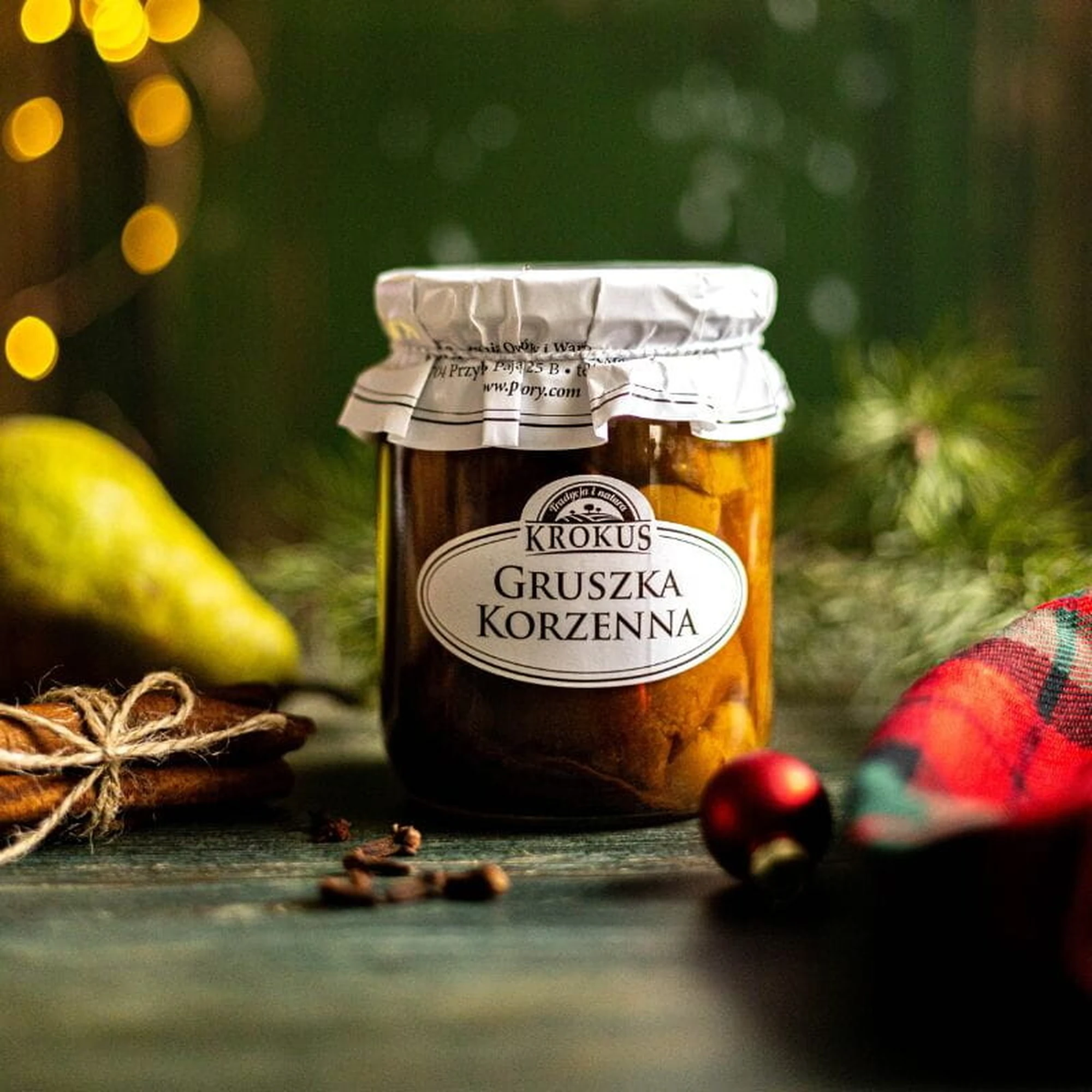 Gruszka korzenna to wyjątkowy produkt spożywczy, w którym dojrzałe gruszki są marynowane z dodatkiem aromatycznych przypraw korzennych. Dzięki tradycyjnym metodom przetwarzania, gruszka nabiera intensywnego, korzennego smaku, który idealnie podkreśla jej naturalną słodycz. Produkt ten doskonale sprawdza się jako zdrowy deser, dodatek do sałatek, a także jako składnik wykwintnych dań kuchni międzynarodowej. W procesie produkcji nie stosuje się sztucznych barwników ani konserwantów, co gwarantuje, że gruszka korzenna zachowuje wszystkie cenne właściwości odżywcze, witaminy i minerały. Dzięki bogactwu antyoksydantów, wspiera odporność organizmu i pomaga w utrzymaniu zdrowej diety. Idealny wybór dla osób ceniących tradycyjne smaki oraz naturalne, ekologiczne produkty, które łączą w sobie walory smakowe z korzyściami zdrowotnymi.