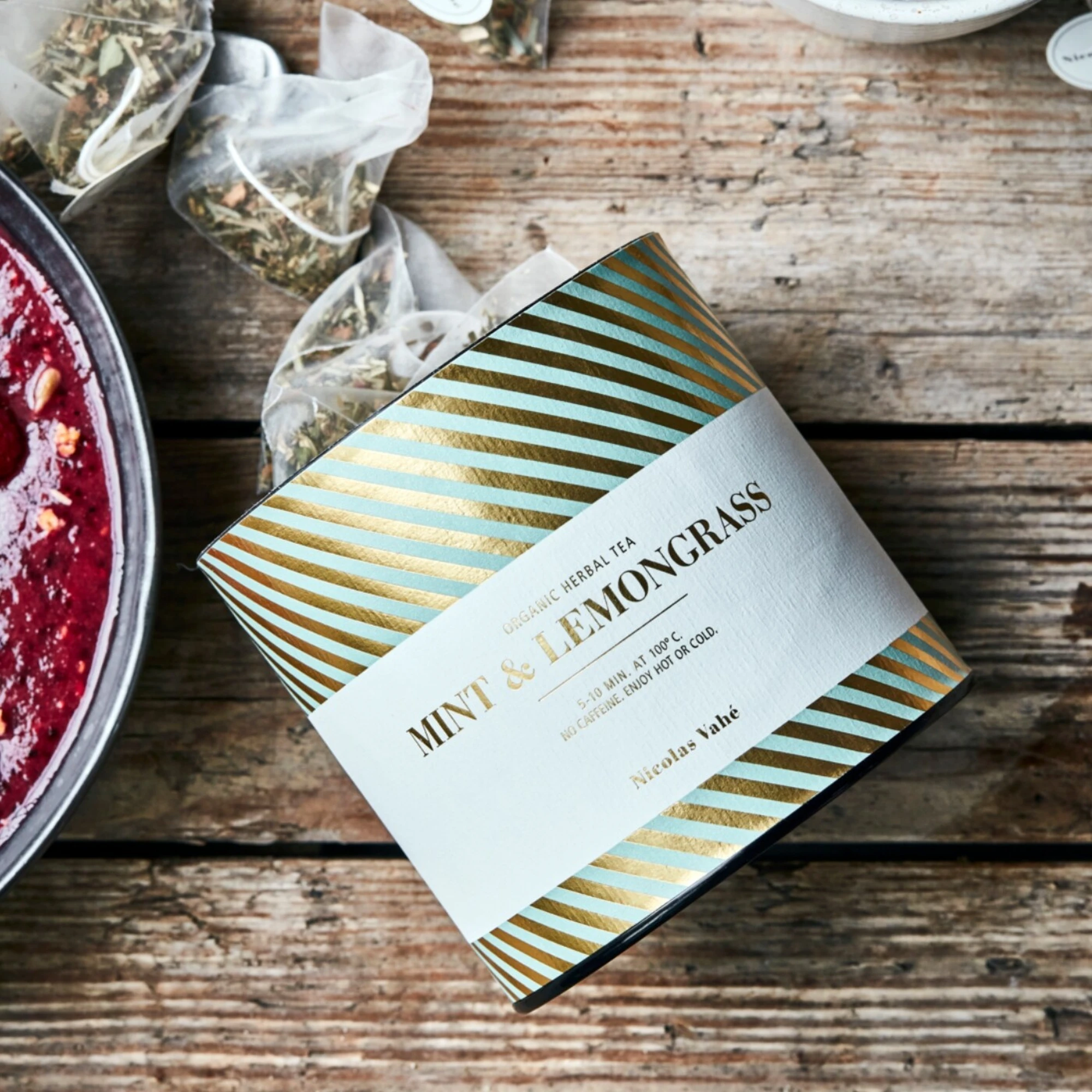 Herbata ziołowa mięta i trawa cytrynowa zanurz się w chwili pełnej relaksu z organiczną herbatą ziołową która łączy orzeźwiające nuty mięty pieprzowej i trawy cytrynowej z naturalną słodyczą jabłek i korzenia lukrecji. Ta starannie skomponowana mieszanka ziół obejmuje także rumianek, liście truskawki, koper włoski, kwiaty lipy i nagietka – wszystko w 100% organiczne. Każda filiżanka to kojące doświadczenie, które odświeża ciało i umysł, idealne zarówno na spokojny poranek, jak i wieczorną chwilę wytchnienia. Eleganckie opakowanie zawiera 20 wygodnych saszetek w formie piramidek, zapewniając doskonałą ekstrakcję smaku i aromatu.