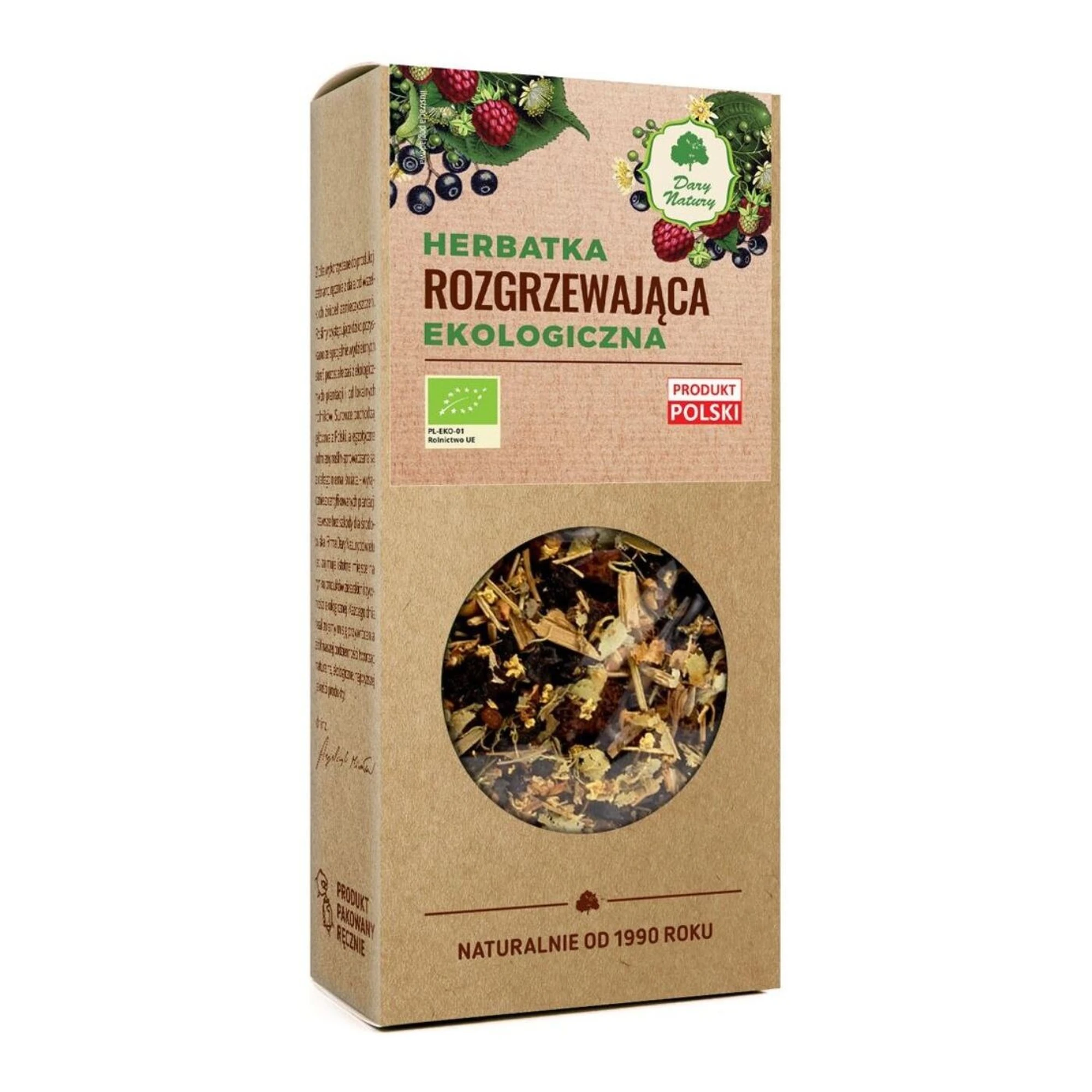 Herbatka rozgrzewająca Bio to napar, który dostarcza cennych składników odżywczych i witamin z naturalnych, certyfikowanych ekologicznych składników. Zawiera witaminy C i E, które wspierają układ odpornościowy oraz działają jako przeciwutleniacze chroniące komórki przed stresem oksydacyjnym. Dzięki obecności malin i jabłka leśnego, herbata dostarcza naturalnych flawonoidów i antyoksydantów, które wspomagają ogólne zdrowie i samopoczucie. Można ją pić samą lub z dodatkiem miodu, cytryny czy świeżych ziół, co podkreśla jej rozgrzewające właściwości i aromat. Doskonale pasuje do spożycia na co dzień jako naturalny sposób na wzmocnienie odporności i poprawę nastroju w chłodniejsze dni. To herbatka, którą można również serwować jako towarzysza relaksu, ciesząc się jej bogatym smakiem i zdrowotnymi właściwościami.