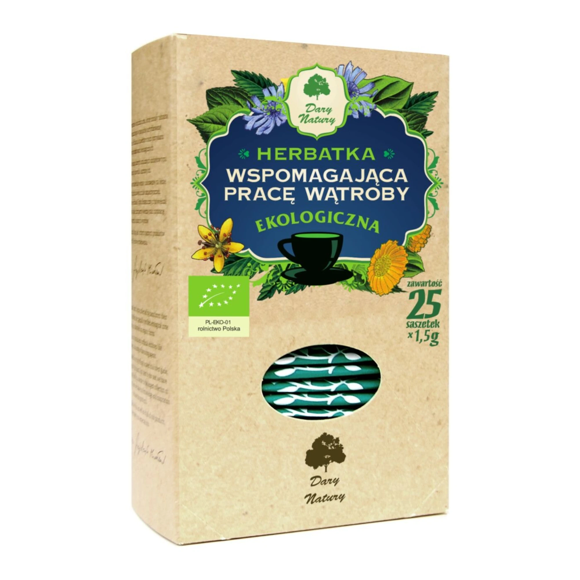 Herbatka wspomagająca pracę wątroby Bio to naturalny napar z ekologicznych składników, takich jak ziele dziurawca, rzepiku, cykorii, berberysu, jarzębiny, karczocha, kocanki, kora jesionu, nagietka, jałowca i mniszka. Zawiera naturalne składniki bogate w witaminy, takie jak witamina C, A i grupy B, które wspierają funkcjonowanie układu odpornościowego i detoksykację organizmu. Zioła te dostarczają również minerałów, takich jak potas, magnez i żelazo, które odgrywają kluczową rolę w utrzymaniu równowagi elektrolitowej i energii. Napar może być spożywany sam lub jako dodatek do herbaty czy innych napojów, a jego łagodny smak świetnie komponuje się z miodem, cytryną lub miętą. Regularne picie herbatki wspomaga oczyszczanie wątroby, poprawia trawienie i dodaje energii na co dzień. To naturalny wybór dla osób dbających o zdrowie, poszukujących wsparcia dla funkcji wątroby i ogólnego samopoczucia.