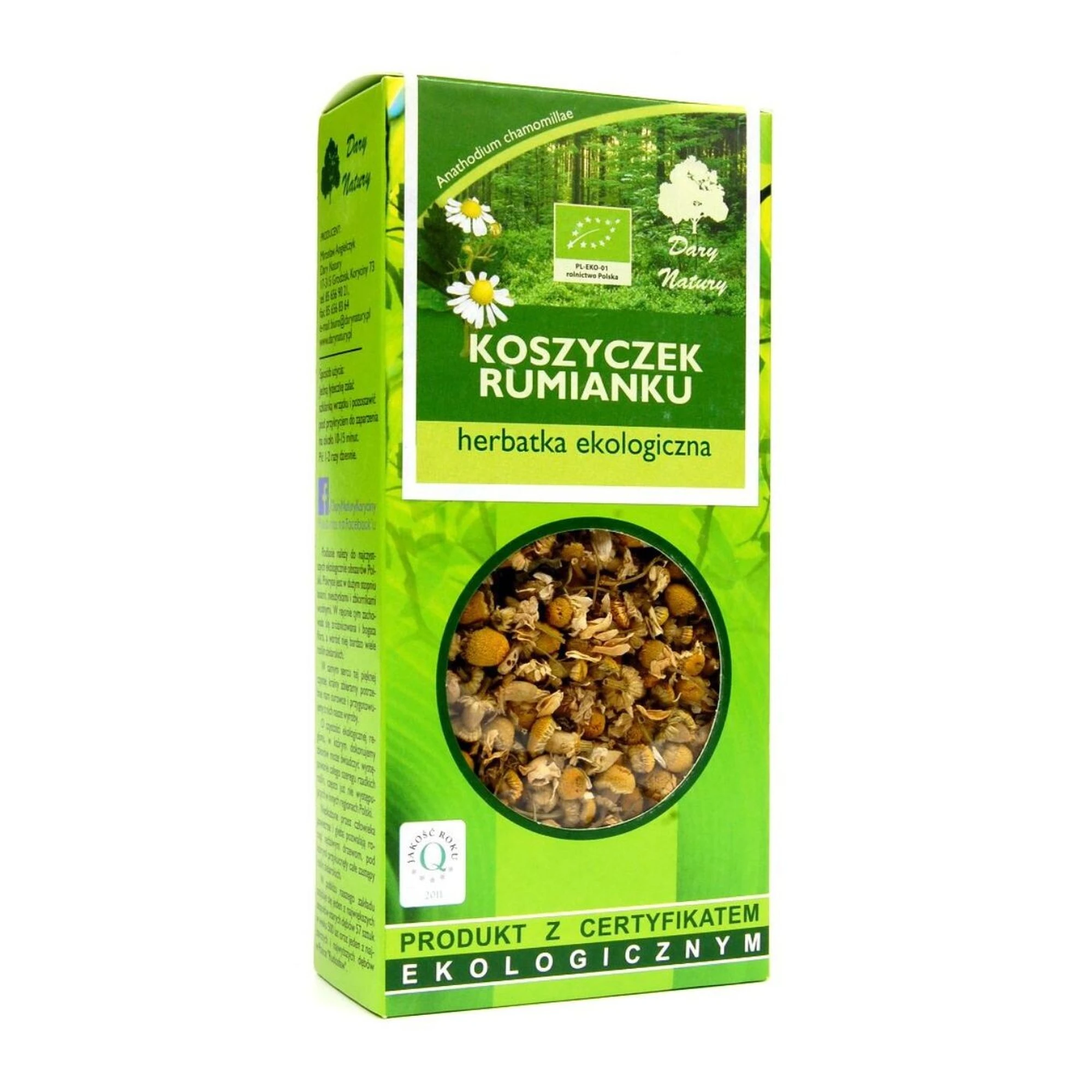 Herbatka z koszyczkiem rumianku Bio to naturalny napar, który pochodzi z certyfikowanych upraw ekologicznych. Rumianek znany jest ze swoich właściwości łagodzących i relaksujących, wspomaga trawienie oraz działa przeciwzapalnie. W jej skład wchodzą delikatne kwiaty rumianku, bogate w witaminy z grupy B, witaminę C oraz przeciwutleniacze, które wspierają odporność organizmu. Herbatka ma subtelny, przyjemny smak, idealny na wieczorne relaksacje lub jako dodatek do codziennych posiłków. Doskonale komponuje się z lekkimi ciastkami, miodem lub cytryną, podkreślając jej naturalny aromat. To zdrowa alternatywa dla słodzonych napojów, idealna dla osób ceniących sobie ekologiczne produkty i naturalne metody wspierania zdrowia.