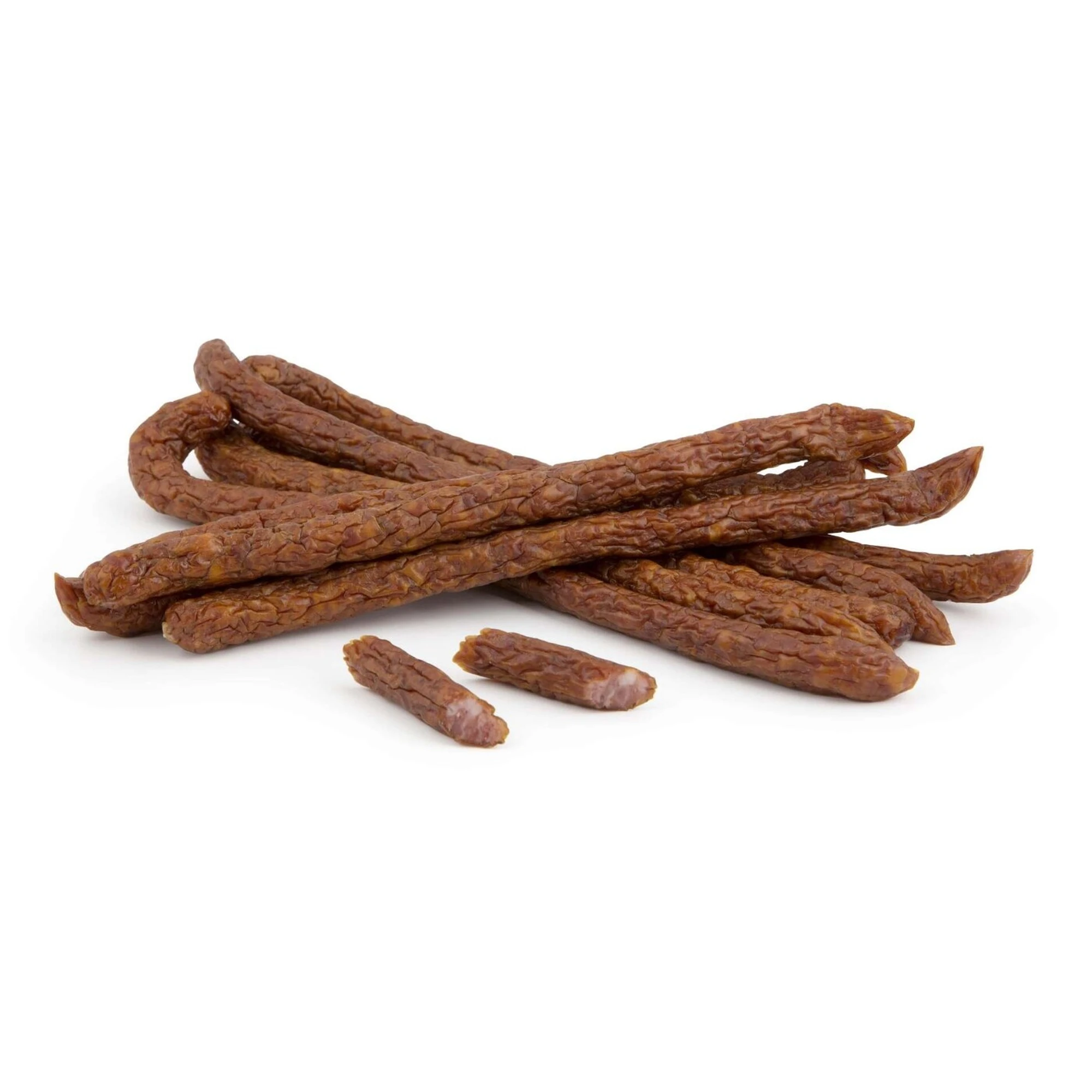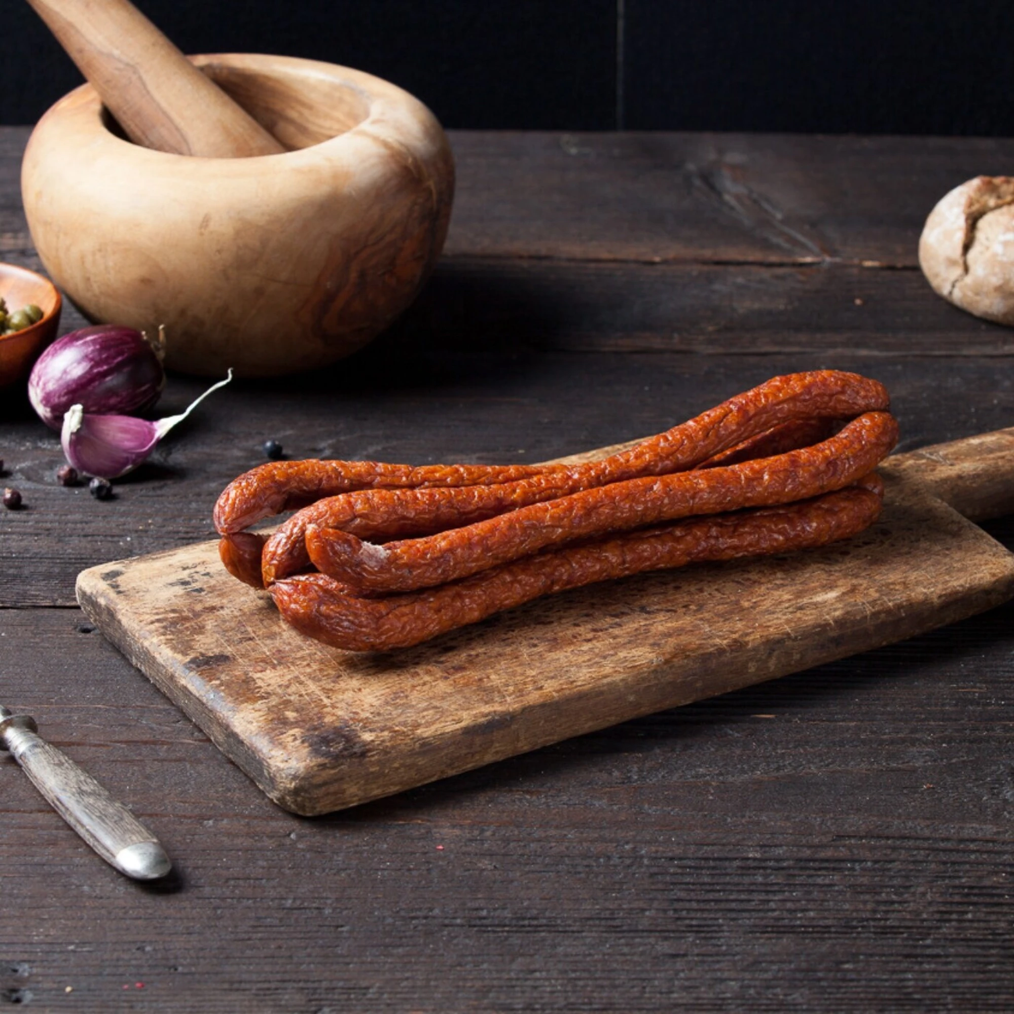 Kabanosy extra BIO to wyjątkowa przekąska dla miłośników naturalnych i ekologicznych wyrobów mięsnych. Wyróżniają się doskonałą jakością, dzięki wykorzystaniu mięsa pochodzącego z certyfikowanych hodowli ekologicznych. Starannie doprawione mieszanką naturalnych przypraw, następnie suszone i wędzone, zachowują intensywny smak oraz charakterystyczną kruchość. Bez sztucznych dodatków, konserwantów i wzmacniaczy smaku – idealne na przekąskę, do kanapek lub jako dodatek do deski serów.
