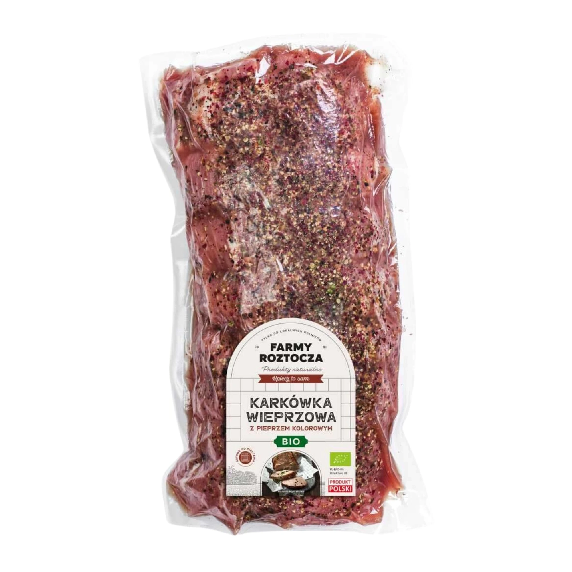 Karkówka wieprzowa BIO z pieprzem kolorowym od Farm Roztocza to produkt stworzony z myślą o wymagających smakoszach ceniących jakość i naturalność. Mięso pochodzi z certyfikowanych hodowli ekologicznych, co gwarantuje jego wysoką jakość i brak sztucznych dodatków. Zostało starannie zamarynowane w mieszance kolorowego pieprzu, który nadaje mu wyrazistego, lekko pikantnego charakteru. Produkt jest przeznaczony do samodzielnego pieczenia – wystarczy wstawić go do nagrzanego piekarnika, aby po chwili cieszyć się soczystym i aromatycznym daniem, które doskonale sprawdzi się zarówno na rodzinny obiad, jak i specjalne okazje.