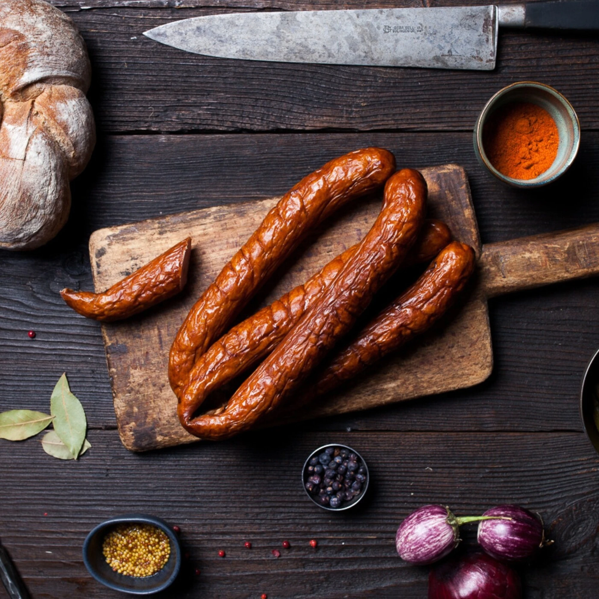 Wykonana z wysokiej jakości mięsa i doprawiona tradycyjną mieszanką przypraw, takich jak czosnek i pieprz, wyróżnia się soczystością oraz delikatnym aromatem wędzenia.