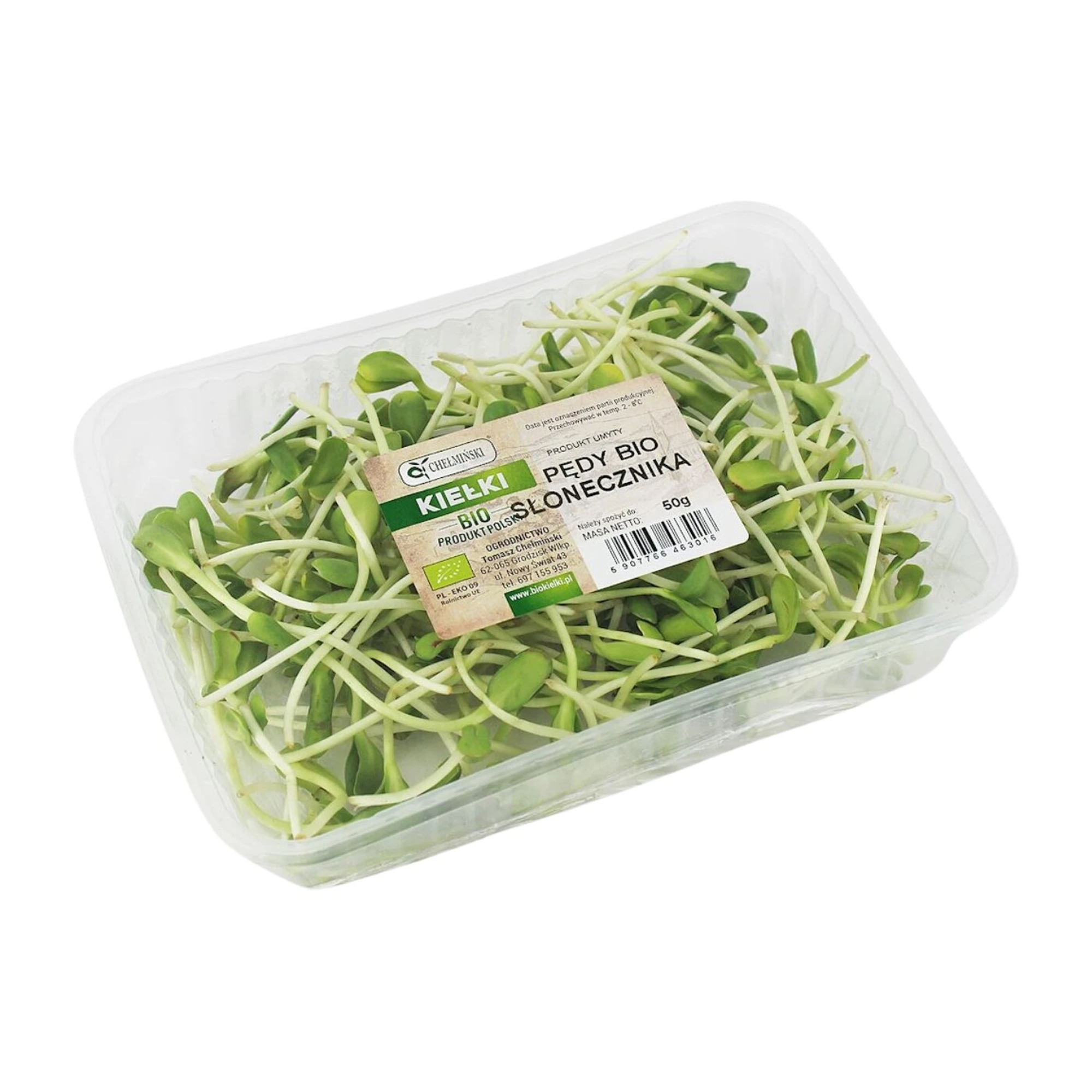 Kiełki słonecznika świeże Bio to bogate źródło cennych składników odżywczych, które wspierają zdrowie i odporność organizmu. Zawierają witaminy z grupy B, witaminę E oraz witaminę A, które korzystnie wpływają na skórę, wzrok i układ nerwowy. Są również bogate w minerały, takie jak magnez, cynk, selen i żelazo, wspomagające prawidłowe funkcjonowanie organizmu. Kiełki słonecznika są doskonałym dodatkiem do sałatek, kanapek, jogurtów czy smoothie, dodając chrupkości i wartości odżywczych. Dzięki swojej delikatnej, orzechowej nucie świetnie komponują się z różnorodnymi potrawami. Warto włączać je do codziennej diety, aby korzystać z ich naturalnych właściwości prozdrowotnych.
