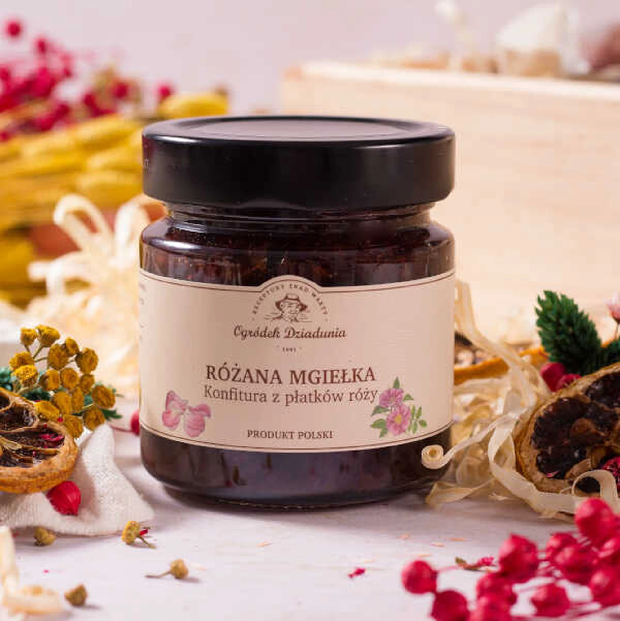 Różana Mgiełka to nie tylko doskonały smak, ale także piękny i oryginalny podarunek. Elegancki słoiczek z konfiturą z płatków róży to świetny pomysł na prezent dla miłośników wyjątkowych smaków, tradycyjnych przetworów oraz wszystkich, którzy cenią naturalne produkty. Idealny na urodziny, święta czy Dzień Babci i Dziadka – bo chwila słodkiej przyjemności to zawsze dobry prezent!