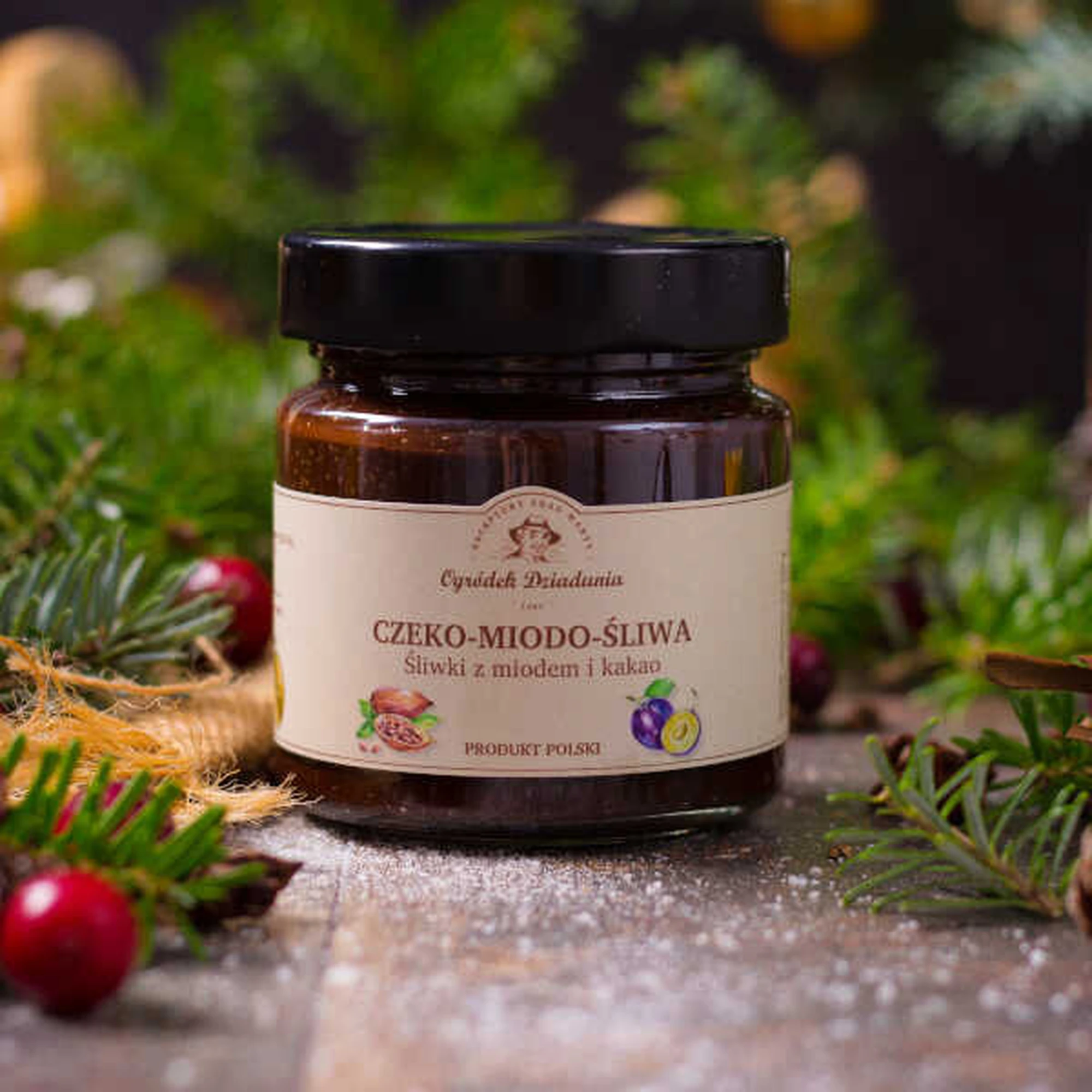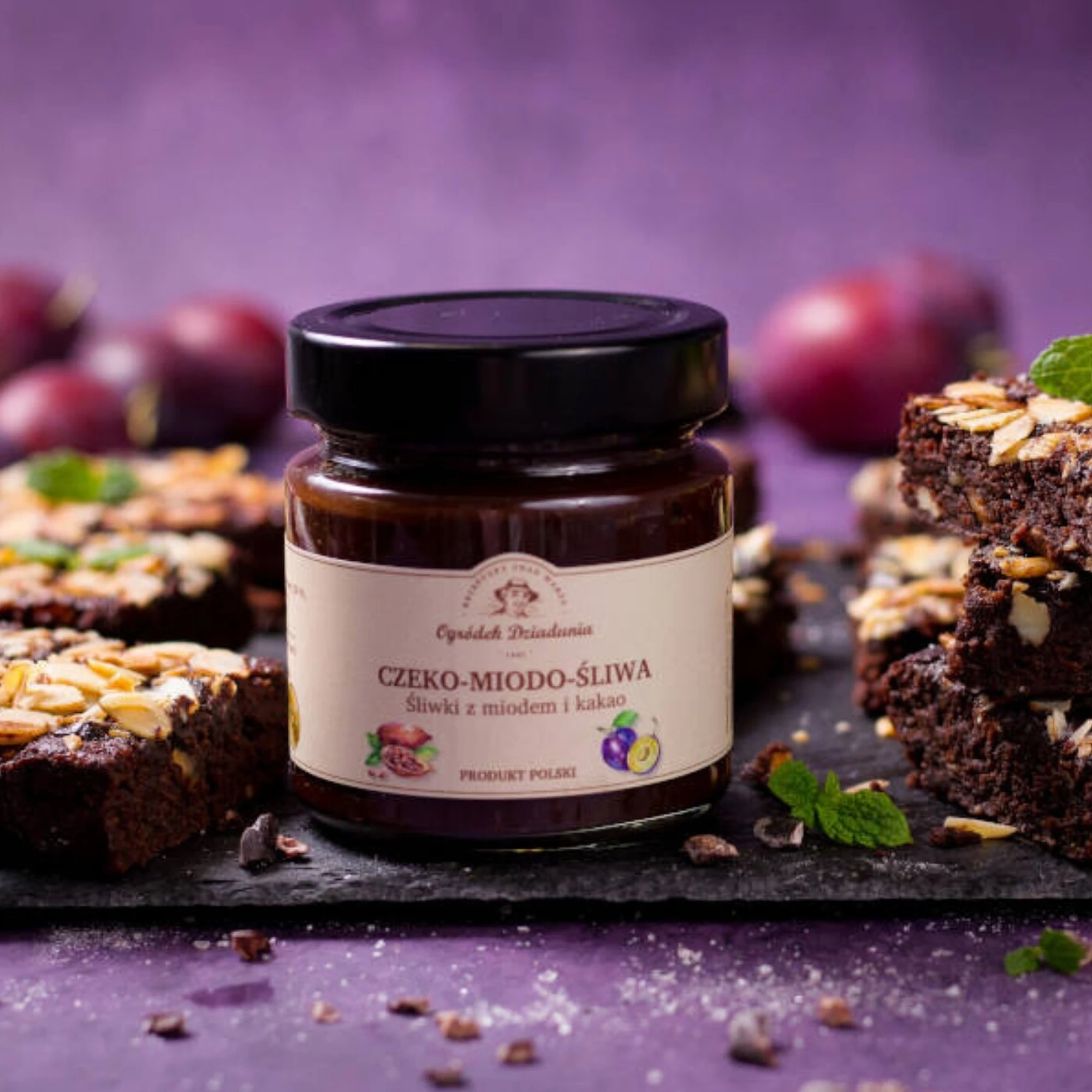 Konfitura ze śliwek, miodu i kakao - Czeko-miodo-śliwa naturalna słodycz śliwek, głęboki smak kakao i delikatna nuta miodu – tylko trzy składniki, a efekt zachwyca! Czeko-miodo-śliwa to zdrowa alternatywa dla tradycyjnych kremów czekoladowych, które dzieci uwielbiają. Konfitura bez dodatku cukru, konserwantów czy sztucznych barwników. Idealny fit smakołyk.