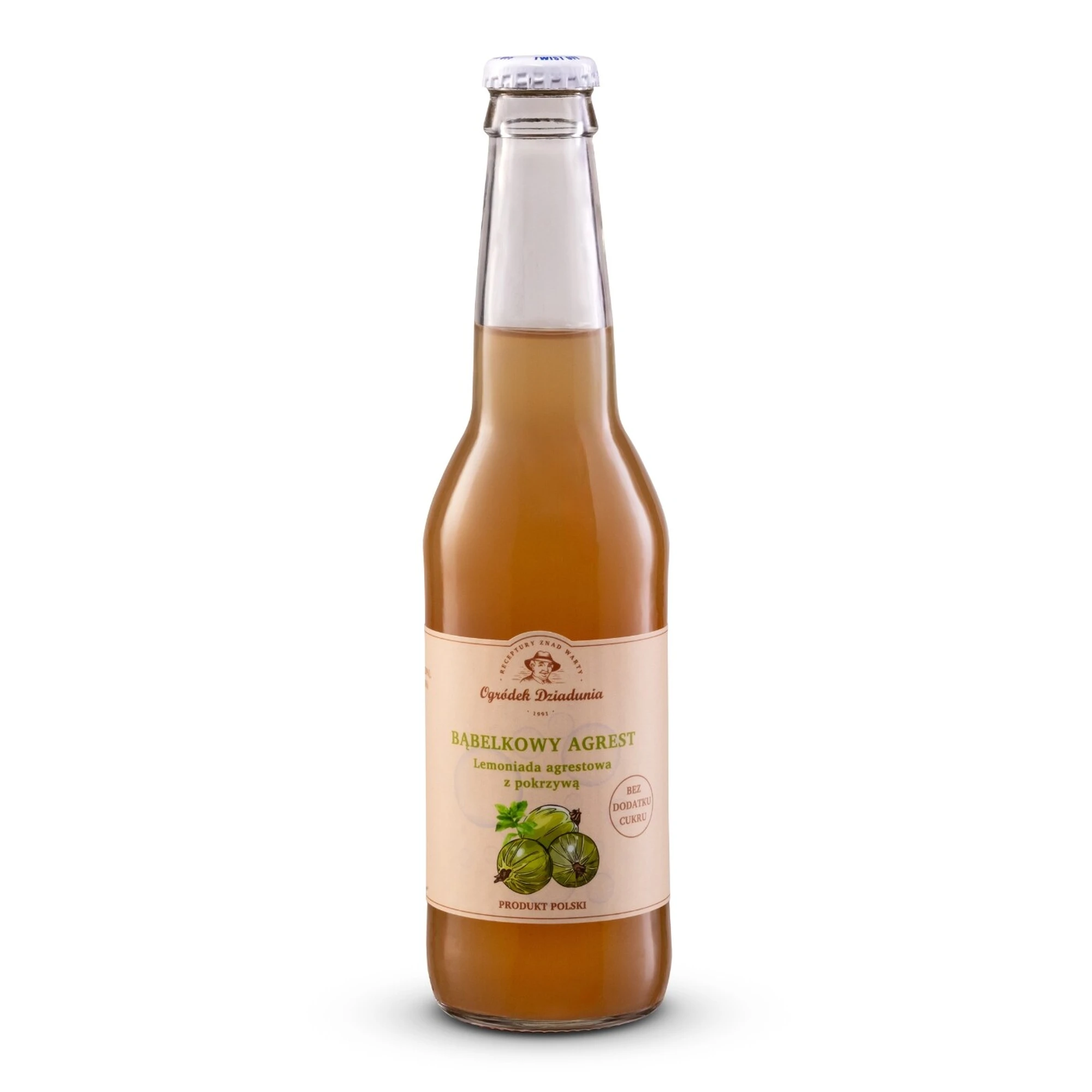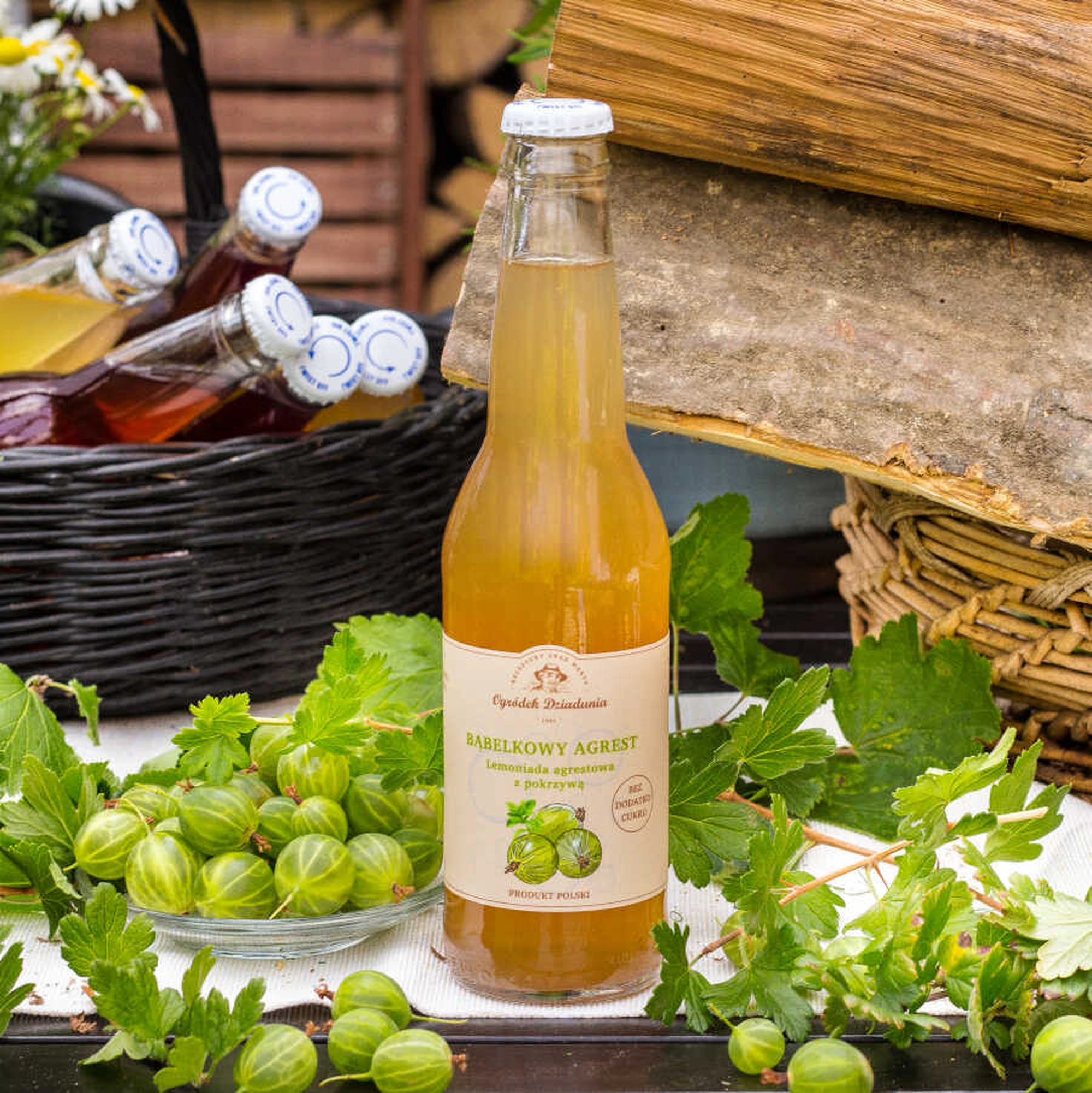 Lemoniada agrestowa z pokrzywą - Bąbelkowy agrest z pokrzywą – gazowana lemoniada, która łączy orzeźwiającą kwaskowatość agrestu z delikatną nutą pokrzywy. To wyjątkowe połączenie powstało wyłącznie z naturalnych składników: świeżo wyciśniętego soku z agrestu, naparu z pokrzywy, miodu i wody gazowanej. Bez dodatku cukru, barwników, aromatów i konserwantów.To idealna propozycja dla miłośników zdrowych i naturalnych napojów, które dodają energii i gaszą pragnienie. Szklane butelki trzymaj w lodóce, dodaj kilka kostek lodu tuż rzed podaniem - tak najepiej smakuje. Poczuj moc natury w każdym łyku!