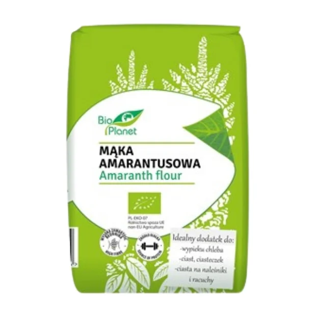Mąka amarantusowa Bio to ekologiczny produkt otrzymywany z ziaren amarantusa, który jest bogaty w cenne składniki odżywcze. Jej lekko orzechowy smak doskonale wzbogaca wypieki, nadając im wyjątkowy aromat i smak. Mąka amarantusowa świetnie komponuje się z innymi rodzajami mąk, co umożliwia tworzenie różnorodnych ciast, ciasteczek, słodkich naleśników, racuchów czy makaronów. Jest doskonałym dodatkiem do chleba, dodając mu wartości odżywczych i chrupkości. Produkt jest źródłem białka, błonnika oraz witamin, wspierając zdrową dietę i dobre samopoczucie. Polecamy go szczególnie osobom poszukującym alternatywy bezglutenowej oraz ceniącym produkty ekologiczne. Wybierając mąkę amarantusową inwestujesz w zdrowie i smak na najwyższym poziomie.