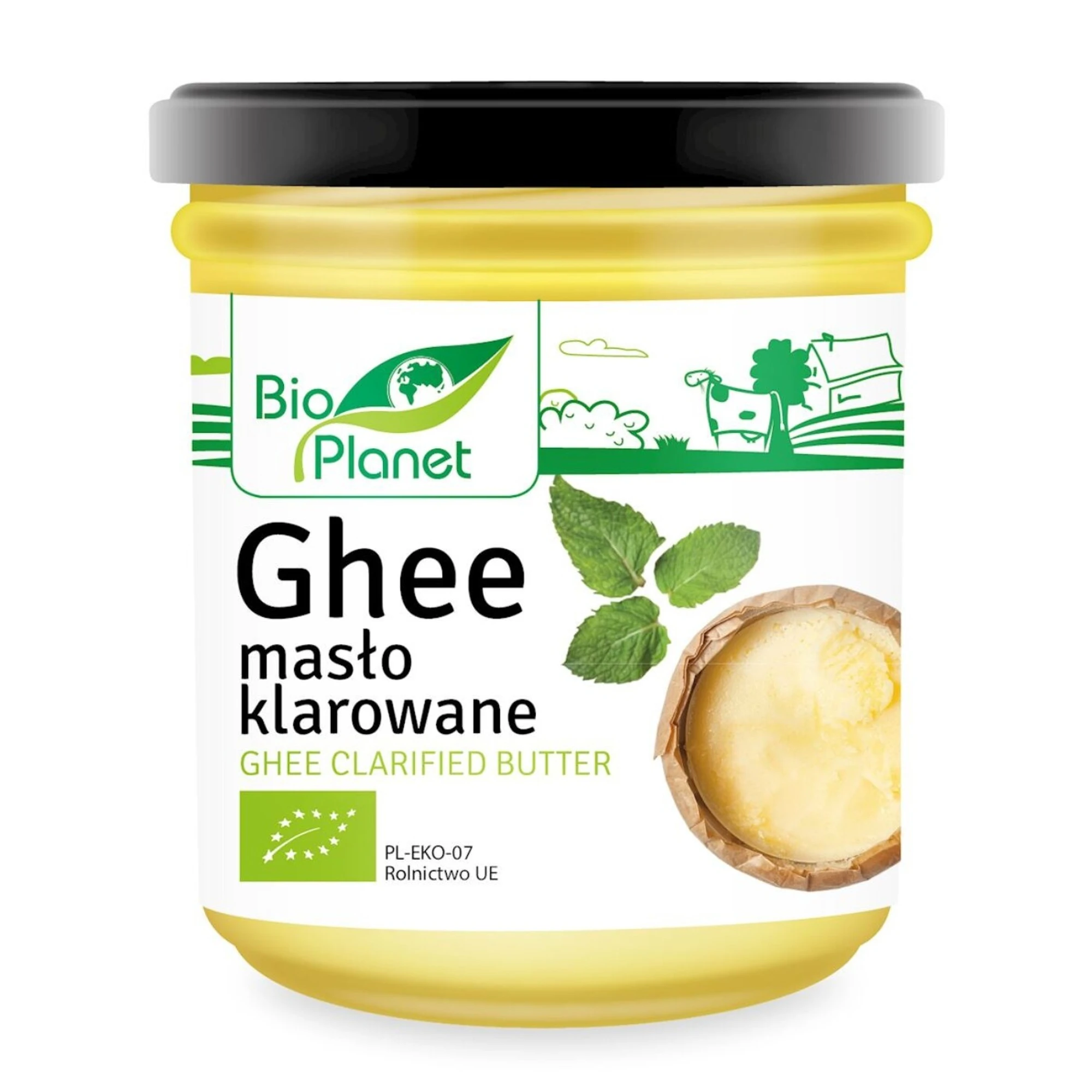 Masło klarowane Ghee BIO to najwyższej jakości tłuszcz pochodzenia mlecznego, otrzymywany poprzez długotrwałe podgrzewanie masła w celu usunięcia wody i białek mlecznych. Dzięki temu jest lekkostrawne, ma wysoką temperaturę dymienia oraz intensywny, orzechowy aromat. Produkt ten doskonale sprawdzi się do smażenia, pieczenia, a także jako dodatek do potraw kuchni indyjskiej, ajurwedyjskiej i tradycyjnej. Masło Ghee BIO jest wolne od laktozy i kazeiny, co czyni je idealnym wyborem dla osób z nietolerancją laktozy.