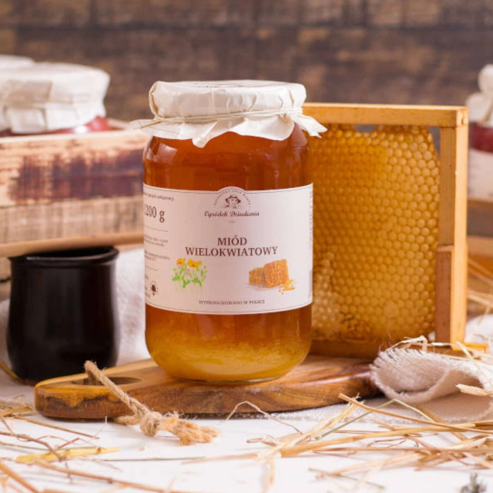 Miód wielokwiatowy to naturalny produkt, który powstaje z nektaru różnych kwiatów. Jego bogaty smak oraz różnorodność zapachów sprawiają, że jest jednym z najczęściej wybieranych miodów. Miód wielokwiatowy charakteryzuje się jasnożółtym lub złocistym kolorem, a jego smak jest łagodny, delikatny, z nutą kwiatową i ziołową. Jest to doskonały wybór dla osób szukających naturalnego słodzika o uniwersalnym zastosowaniu. Miód wielokwiatowy posiada właściwości przeciwzapalne i antybakteryjne, wspomagając organizm w walce z infekcjami. Regularne spożywanie miodu może poprawić trawienie i łagodzić dolegliwości żołądkowe, takie jak zgaga czy wzdęcia. Miód ten jest bogaty w antyoksydanty, które chronią serce i naczynia krwionośne, zapobiegając chorobom układu krążenia. Miód ma działanie uspokajające, dzięki czemu jest polecany na noc w celu lepszego snu. Miód wielokwiatowy jest doskonałym źródłem witamin, minerałów i enzymów, które wspierają funkcjonowanie organizmu na co dzień. Jego uniwersalność sprawia, że może być używany zarówno do słodzenia napojów, jak i jako dodatek do różnych dań.