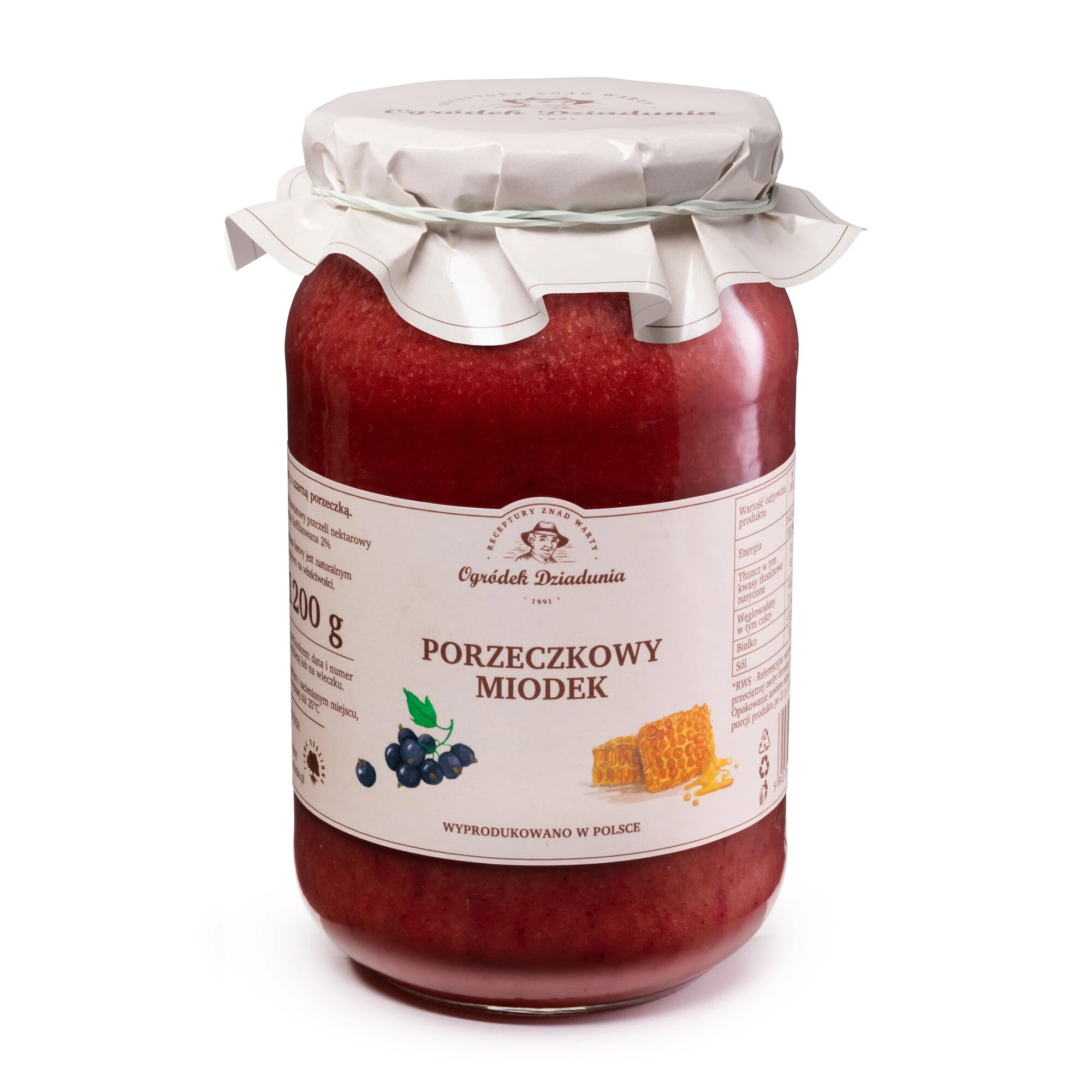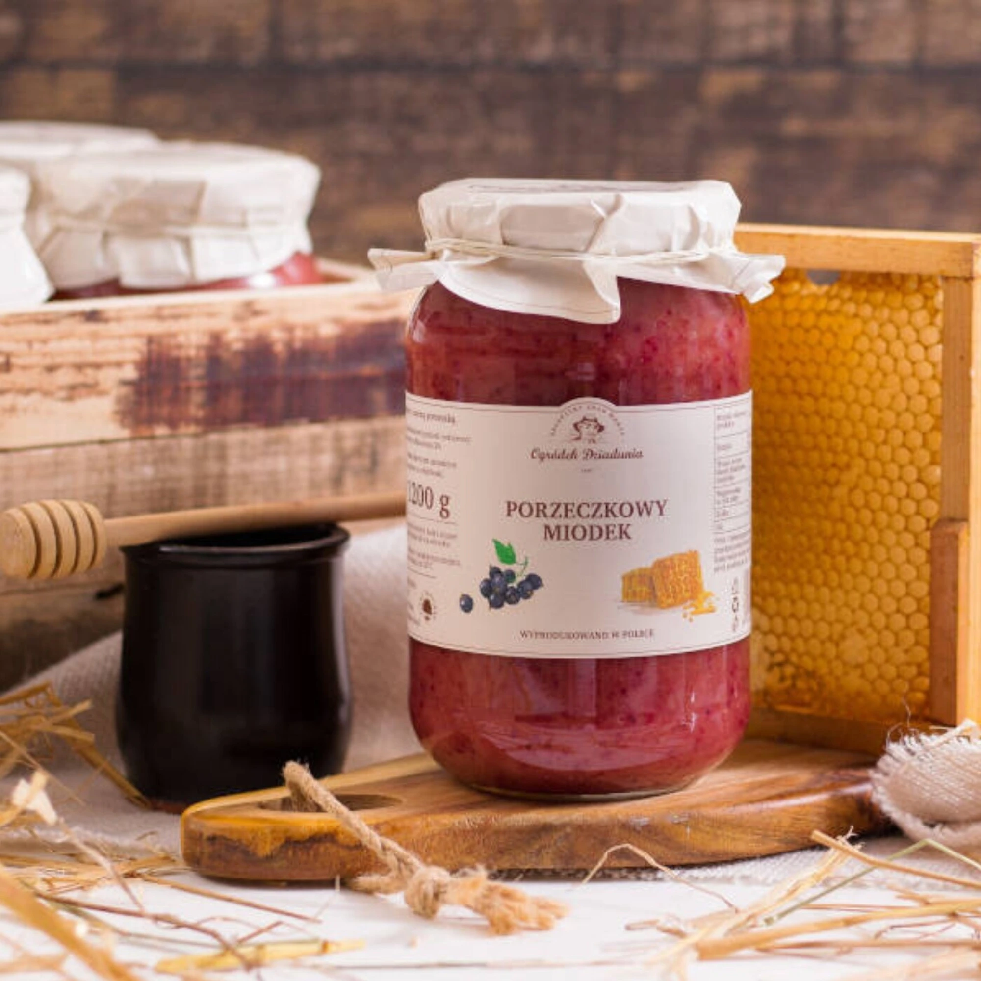 Miód wielokwiatowy z porzeczką - Porzeczkowy miodek to harmonijne połączenie miodu wielokwiatowego z aromatyczną, liofilizowaną porzeczką. Intensywny smak, piękny kolor i mnóstwo wartości odżywczych sprawiają, że to prawdziwa uczta dla podniebienia i zdrowia. Miód jest idealny na zmęczenie i spadek nastroju. Doskonała alternatywa dla cukru i sztucznych słodzików. Świetnie komponuje się z chlebem, bułeczkami i croissantami. Wzbogaca smak lodów, naleśników i owsianek. Może dodać ciekawego, owocowego akcentu do sałatek. Porzeczkowy Miodek to idealny prezent dla bliskich – na święta, urodziny czy inne wyjątkowe okazje.