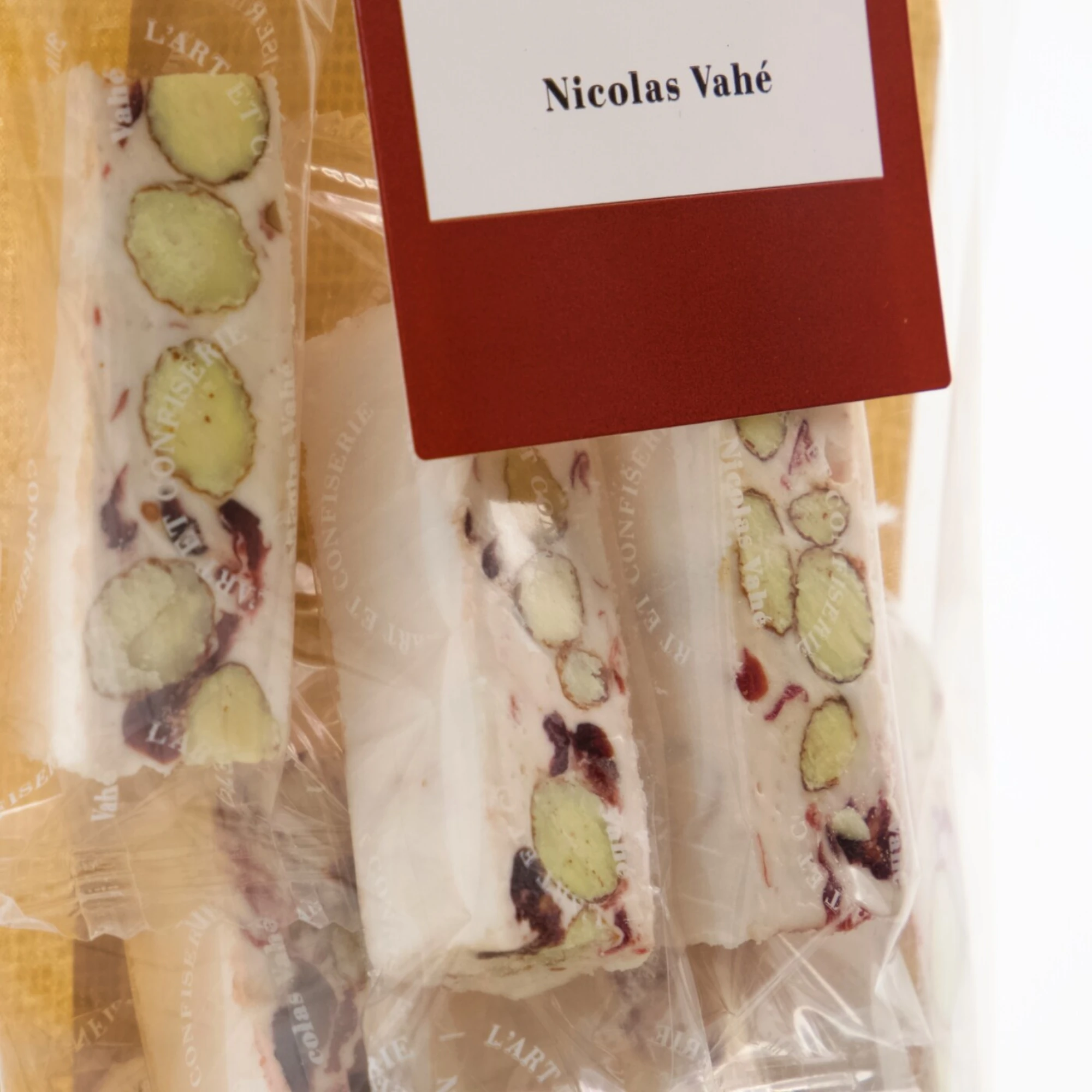 Nougat z żurawiną rozkoszuj się subtelną przyjemnością włoskiego nugatu z dodatkiem soczystej żurawiny. Ta wyrafinowana słodycz łączy w sobie delikatną, kremową konsystencję z wyraźnym, owocowym akcentem, tworząc doskonale zbalansowaną kompozycję smaków. Żurawina dodaje nie tylko świeżości, ale także lekko kwaskowego przełamania, które idealnie kontrastuje ze słodyczą nugatu. Każdy kawałek jest doskonały jako deser do kawy, elegancki poczęstunek dla gości czy drobny prezent dla bliskiej osoby.