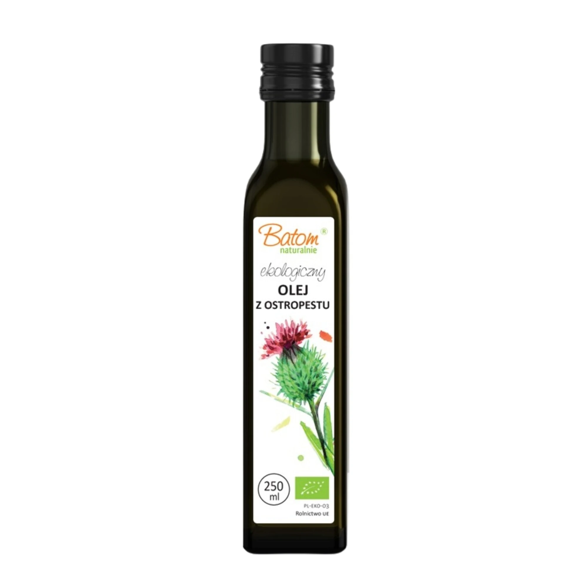 Olej z ostropestu plamistego tłoczony na zimno BIO to najwyższej jakości produkt, pozyskiwany z certyfikowanych, ekologicznych nasion ostropestu plamistego. Dzięki metodzie tłoczenia na zimno, olej zachowuje pełnię cennych fitoskładników, antyoksydantów oraz naturalnych właściwości wspierających zdrowie wątroby i układu pokarmowego. Jego delikatny, lekko orzechowy smak sprawia, że doskonale komponuje się z sałatkami, smoothie czy innymi zdrowymi potrawami. Wybierając ten produkt, stawiasz na naturalność, tradycyjne metody produkcji oraz najwyższą jakość, wolną od sztucznych dodatków.