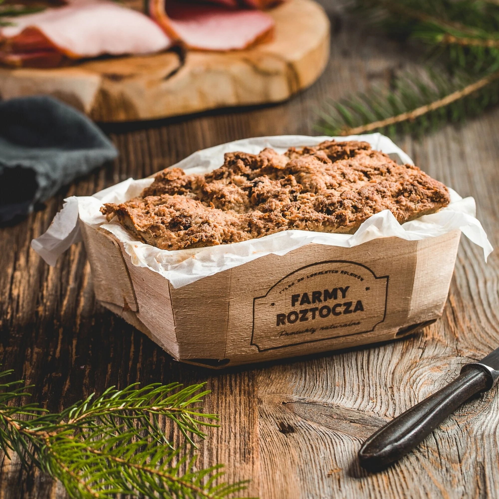 Pasztet z żurawiną to wykwintne połączenie delikatnego, pieczonego pasztetu mięsnego z lekko słodką nutą owocowej żurawiny. Idealnie zbalansowany smak sprawia, że pasztet świetnie sprawdza się zarówno jako codzienny dodatek do pieczywa, jak i elegancka przystawka na specjalne okazje. Naturalne składniki i tradycyjna receptura to gwarancja jakości.