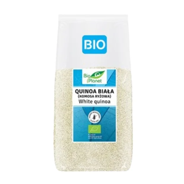 Quinoa biała (komosa ryżowa) bezglutenowa Bio to bezglutenowy, ekologiczny produkt pochodzący z certyfikowanych upraw Bio, idealny dla osób dbających o zdrową dietę. Dzięki swojej uniwersalności doskonale zastępuje tradycyjne kasze i makarony, sprawdzając się jako dodatek do zup, sałatek, warzyw, sosów, a także wypieków i deserów. Quinoa jest bogata w białko roślinne, błonnik, witaminy oraz minerały, co czyni ją wartościowym składnikiem każdego posiłku. Warto ją włączać do codziennej diety, wspierając zdrowie układu trawiennego i zwiększając poziom energii. Produkt jest łatwy w przygotowaniu – wystarczy opłukać przed gotowaniem, aby usunąć naturalną gorzkość. Ekologiczne uprawy gwarantują wysoką jakość i pełnię wartości odżywczych. W sklepie Foodnest.pl znajdziesz quinoa białą, która doskonale sprawdzi się w wielu przepisach, dodając potrawom wyjątkowego smaku i wartości odżywczych.