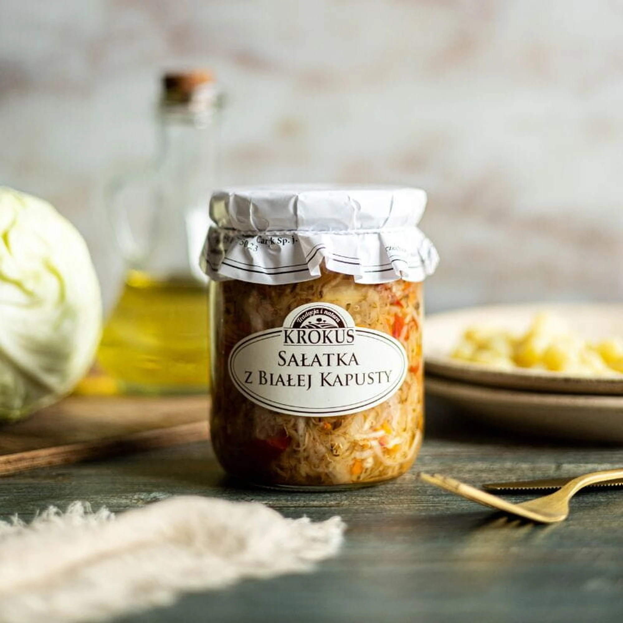 Sałatka z białej kapusty to klasyczny dodatek, który wzbogaca każdy posiłek o świeżość i chrupkość. Przygotowana według tradycyjnej receptury z wyselekcjonowanej, świeżej kapusty, z dodatkiem naturalnych przypraw, dostarcza cennych witamin, minerałów i błonnika, wspomagając trawienie i utrzymanie zdrowia. Jej lekko kwaśny, orzeźwiający smak idealnie komponuje się zarówno z daniami mięsnymi, jak i wegetariańskimi, czyniąc ją niezastąpionym elementem zdrowej, domowej kuchni. Doskonale sprawdza się jako samodzielna przekąska lub jako dodatek do obiadu, przywołując wspomnienia tradycyjnych, domowych posiłków.