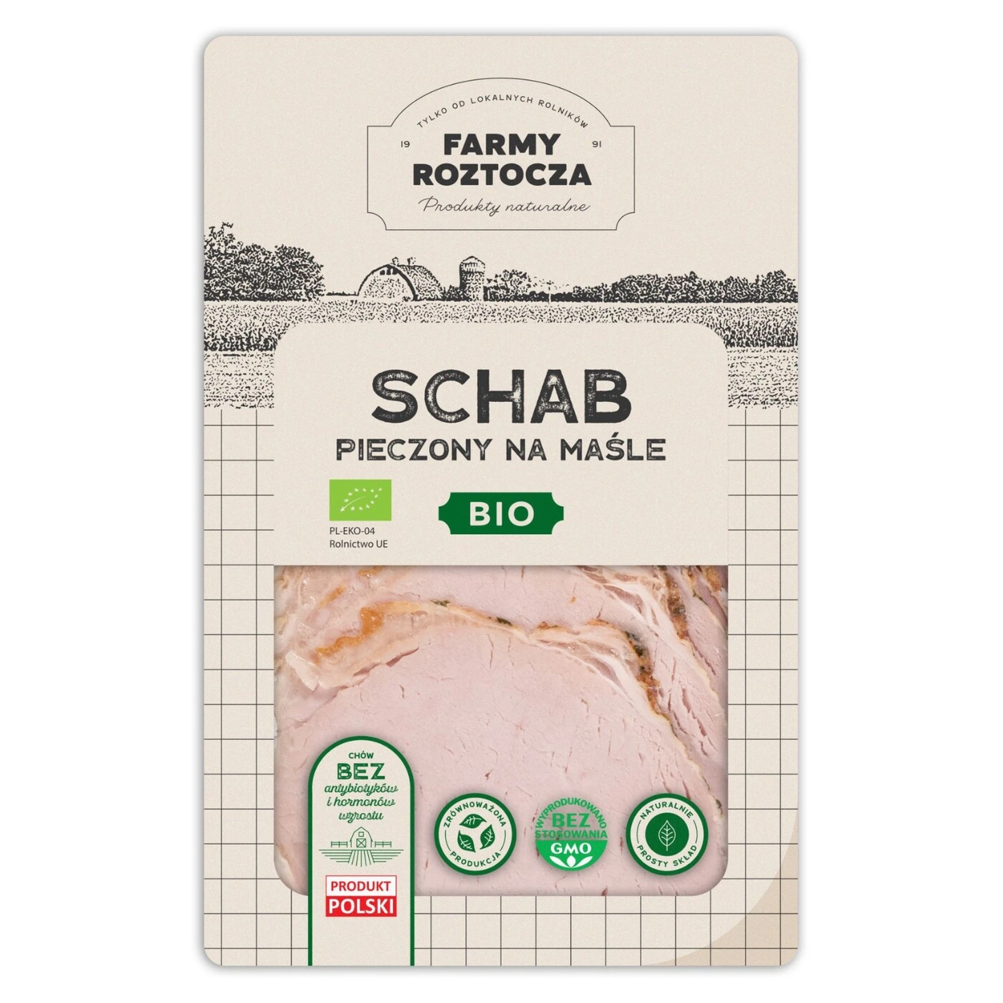 Schab pieczony na maśle w plastrach BIO to wyjątkowa wędlina o delikatnej, soczystej strukturze i maślanym aromacie. Przygotowany z najwyższej jakości mięsa ekologicznego, bez konserwantów i sztucznych dodatków. Doskonały na kanapki, deski wędlin i jako wykwintna przekąska. Produkt BIO – naturalny smak i tradycyjna receptura dla wymagających smakoszy.