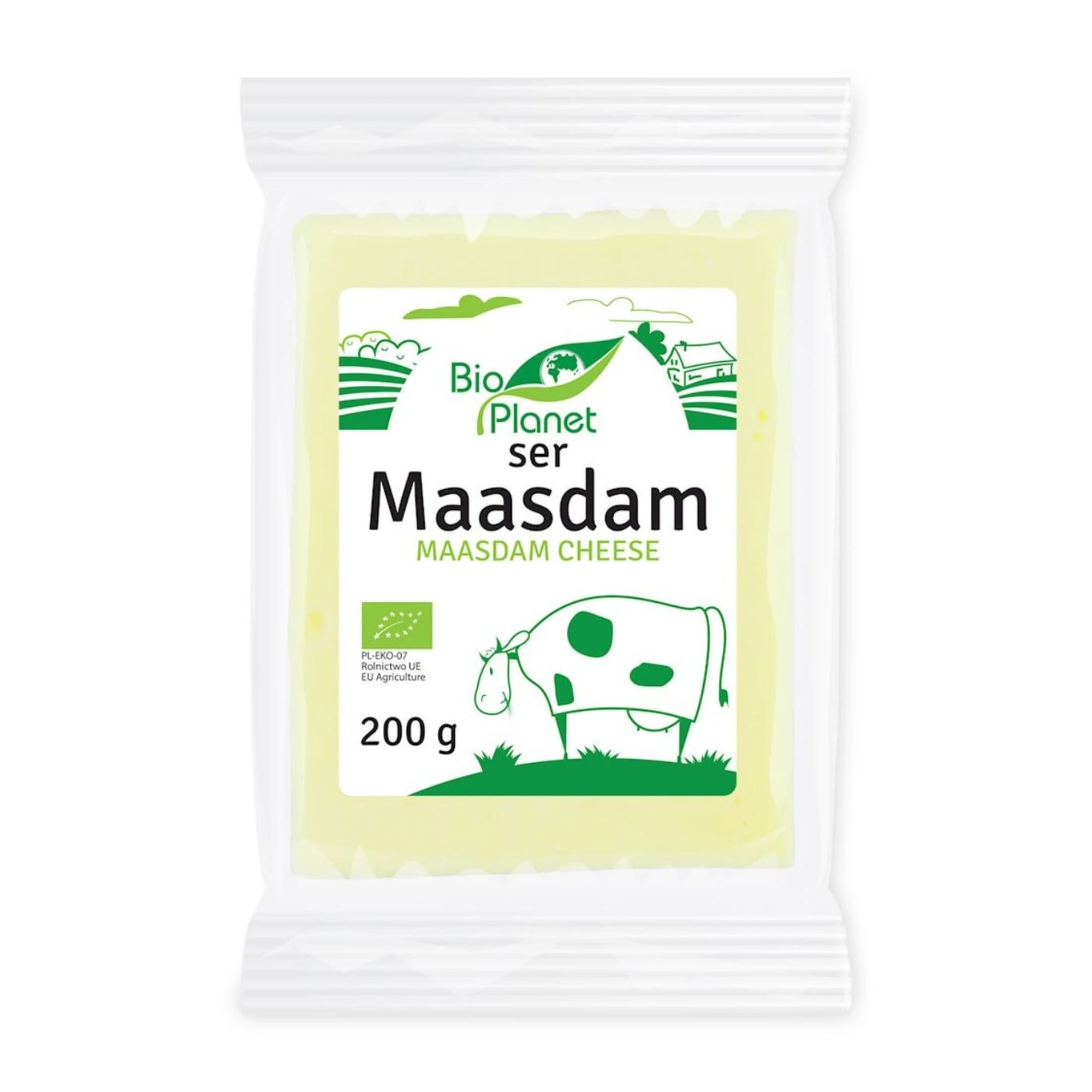 Ser Maasdam w plastrach Bio to ekologiczny ser o charakterystycznym, lekko orzechowym smaku i elastycznej konsystencji z naturalnymi oczkami. Produkowany z mleka pochodzącego z certyfikowanych gospodarstw ekologicznych, jest bogaty w białko, wapń oraz witaminy A i D, wspierające zdrowe kości i odporność. Dzięki wygodnej formie plastrów doskonale sprawdzi się na kanapkach, tostach, burgerach oraz jako składnik różnorodnych dań. Ser bez sztucznych konserwantów i dodatków – wybierz naturalną jakość i doskonały smak sera Maasdam BIO!