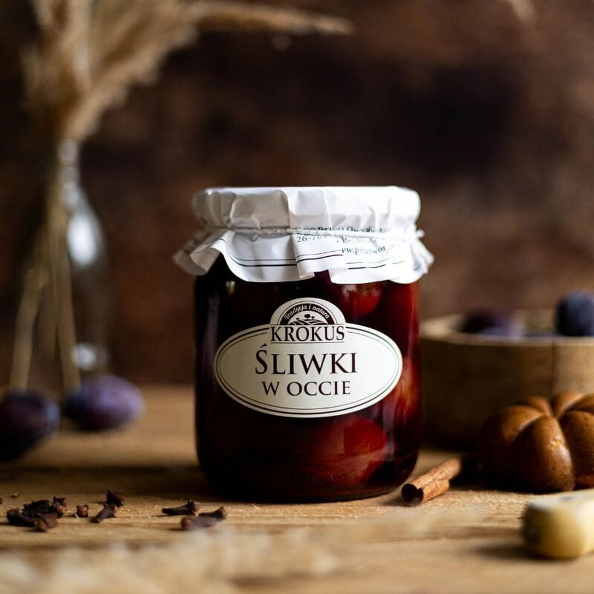 Śliwki w occie to tradycyjny przetwór przygotowywany z dojrzałych, soczystych śliwek pochodzących z ekologicznych upraw, marynowanych w naturalnym occie z dodatkiem aromatycznych przypraw. Dzięki starannie dobranym składnikom i tradycyjnym metodom, śliwki nabierają intensywnego smaku oraz delikatnego, lekko kwaskowatego aromatu, który doskonale komponuje się zarówno z potrawami wytrawnymi, jak i deserami. Przetwór ten zachowuje wszystkie cenne właściwości odżywcze śliwek, wzbogacone o naturalne witaminy i minerały, co sprawia, że stanowi zdrowy dodatek do sałatek, sosów, marynat i innych dań. Śliwki w occie to doskonały wybór dla miłośników tradycyjnej, domowej kuchni, którzy cenią naturalność i wysoką jakość produktów.