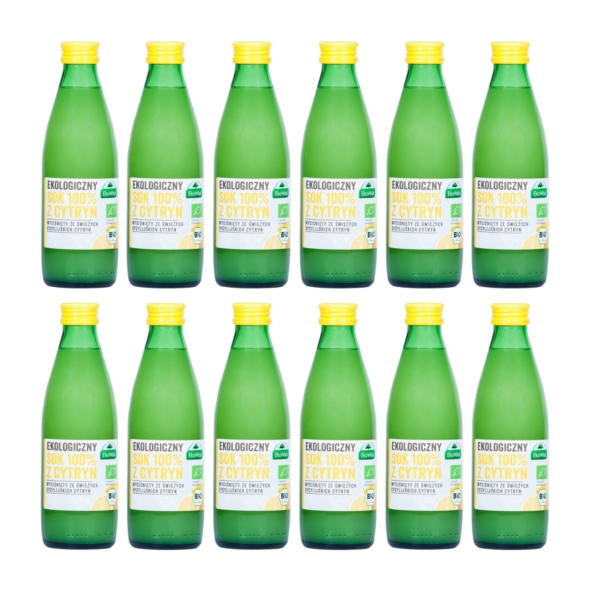 Sok z cytryn 100% - naturalny i intensywnie cytrusowy sok z cytryn 100% od Eko Wital to esencja świeżości w najczystszej postaci. Wytwarzany z dojrzałych ekologicznych cytryn, bez dodatku cukru, wody ani konserwantów. Idealny do herbaty, napojów, dressingów i deserów, a także jako naturalny środek wspomagający odporność. W zestawie znajduje się 12 butelek – doskonała opcja dla miłośników zdrowych smaków i codziennego stosowania w kuchni.