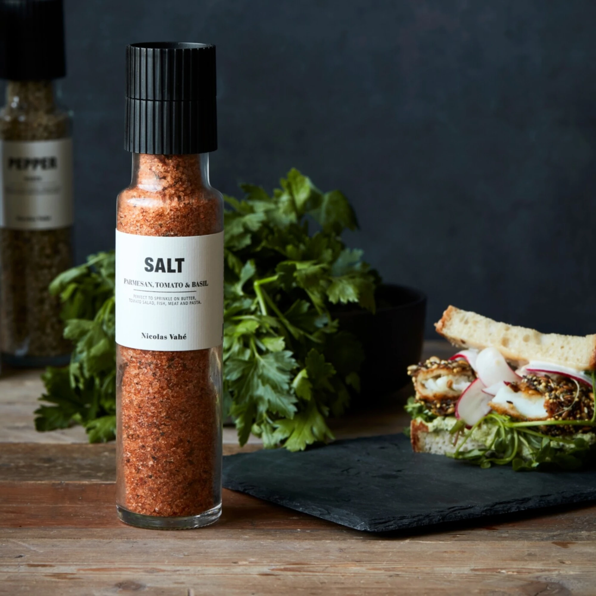 Sól parmezan, pomidor i bazylia ta aromatyczna mieszanka to prawdziwa uczta dla podniebienia i idealny sposób, by dodać włoskiego charakteru codziennym daniom. Połączenie intensywnego parmezanu, słodkich pomidorów i świeżej bazylii sprawia, że każda potrawa zyskuje nowy wymiar smaku. Doskonale komponuje się z makaronami, pizzą, sałatkami, pieczonymi warzywami, a także jako wykończenie dań kuchni śródziemnomorskiej. Umieszczona w estetycznym młynku ceramicznym, sól nie tylko ułatwia dozowanie, ale także uwalnia aromaty tuż przed podaniem.