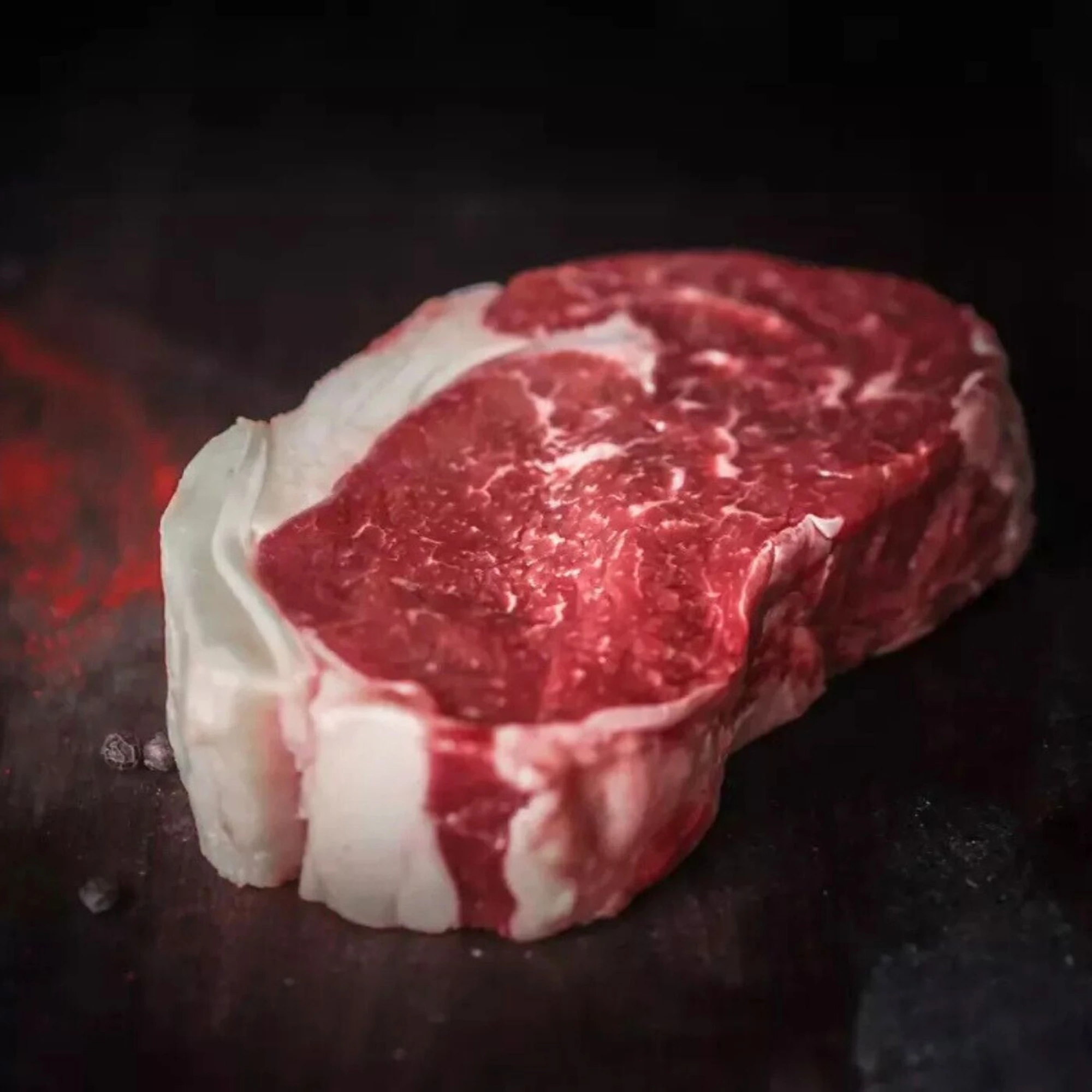 Gruba porcja soczystego antrykotu z kością, ręcznie wyselekcjonowana pod kątem marmurkowatości.
