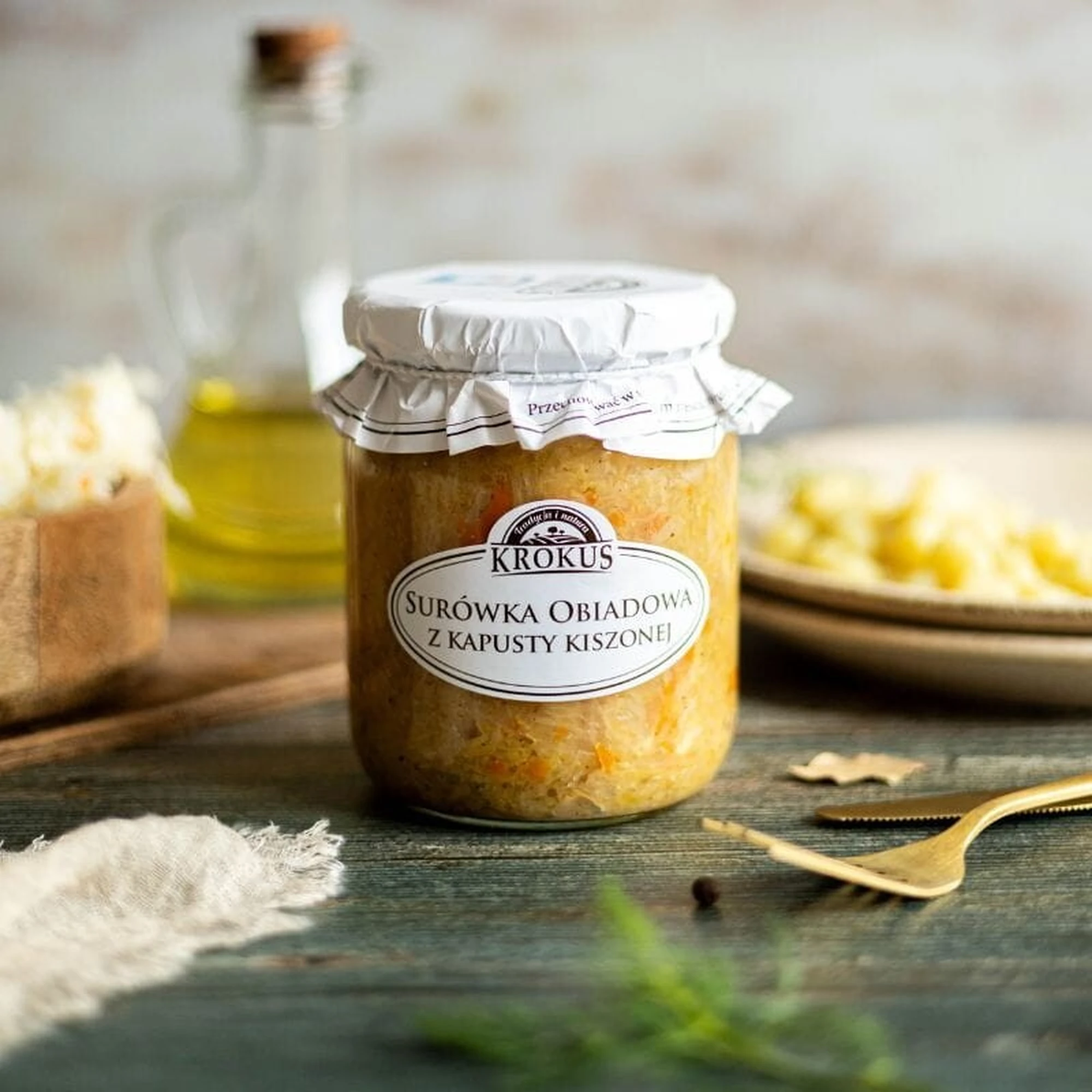 Surówka obiadowa z kapusty kiszonej to tradycyjny dodatek, który wnosi do każdego posiłku autentyczny, domowy smak i bogactwo wartości odżywczych. Wykonana wyłącznie z naturalnie fermentowanej kapusty, bez sztucznych dodatków, zachowuje intensywny, lekko kwaskowaty aromat i chrupiącą konsystencję. Ta surówka jest nie tylko pyszna, ale i zdrowa – stanowi źródło cennych probiotyków, które wspierają trawienie i odporność organizmu. Idealnie komponuje się z daniami mięsnymi, rybnymi oraz potrawami wegetariańskimi, wzbogacając każdy obiad o tradycyjny, domowy akcent. Doskonały wybór dla osób ceniących naturalną i zdrową żywność, którzy pragną cieszyć się klasycznym smakiem polskiej kuchni.