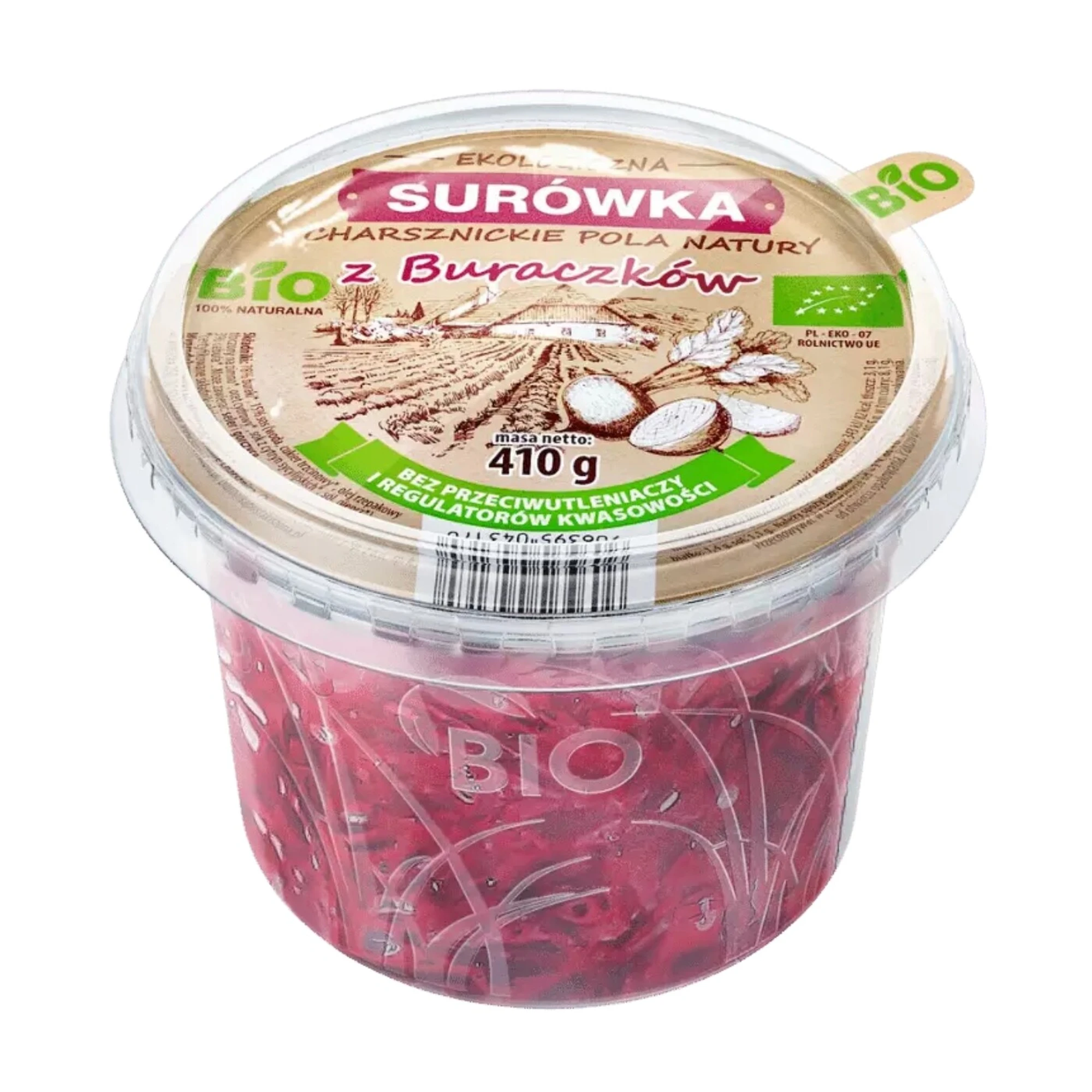 Surówka z Buraczków Ekologiczna to wyjątkowy produkt stworzony z najwyższej jakości buraków i warzyw pochodzących z certyfikowanych upraw ekologicznych. Dzięki naturalnym składnikom, wolnym od azotanów, pestycydów i sztucznych nawozów, surówka zachowuje swój intensywny smak i cenne wartości odżywcze. Idealnie komponuje się jako dodatek do obiadów, sałatek i zdrowych przekąsek. Bez konserwantów, regulatorów kwasowości i sztucznych przeciwutleniaczy, to doskonały wybór dla osób ceniących zdrową i naturalną żywność.