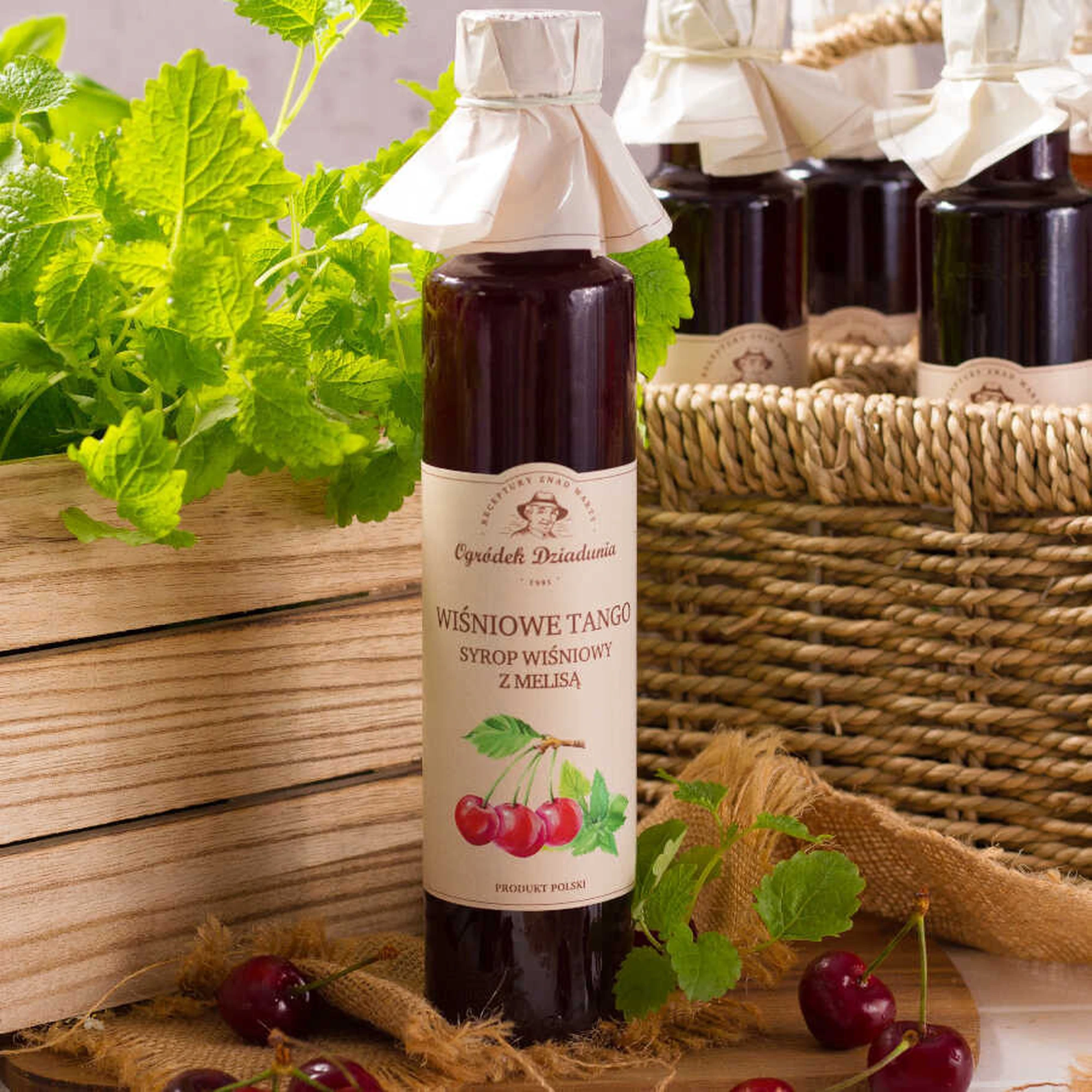Syrop wiśnia z melisą to naturalny i aromatyczny produkt, który doskonale uzupełnia codzienne menu. Wykonany z wyselekcjonowanych owoców wiśni oraz świeżych liści melisy, syrop ten posiada właściwości łagodzące, wspomaga trawienie i działa relaksująco na układ nerwowy. Zawiera witaminy C i A, które wzmacniają odporność oraz korzystnie wpływają na kondycję skóry. Idealny do dodania do herbat, napojów gazowanych, a także jako słodki dodatek do deserów i jogurtów. Można go także używać do przygotowania domowych lemoniad, koktajli lub sosów do mięs i słodkich wypieków. To wszechstronny produkt, który sprawdzi się zarówno jako naturalny słodzik, jak i zdrowa alternatywa dla sztucznych słodzików.