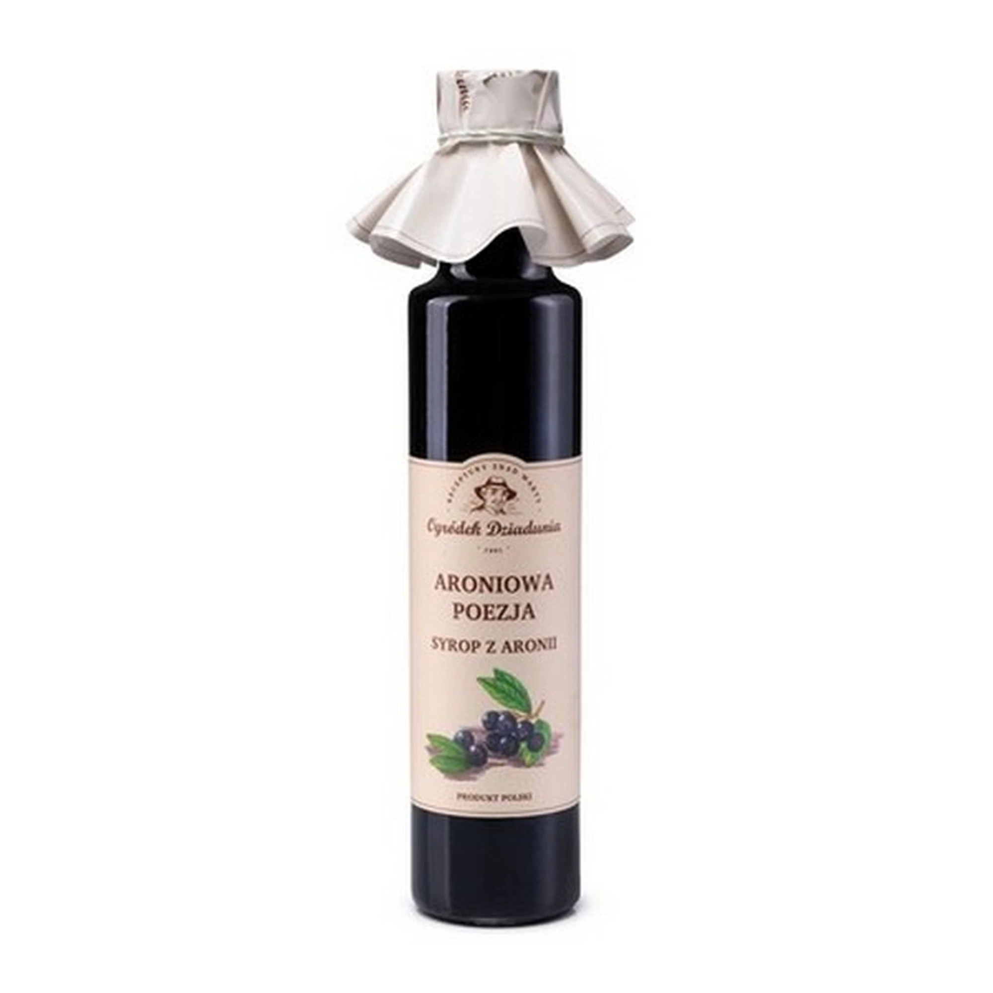 Syrop z aronii - Aroniowa Poezja to prawdziwy eliksir zdrowia, który nie tylko zachwyca głębokim smakiem, ale także wspiera organizm dzięki wysokiej zawartości antyoksydantów, witamin i minerałów. To naturalny sposób na wzmocnienie odporności i poprawę samopoczucia, szczególnie w okresie jesienno-zimowym. Syrop bez konserwantów, sztucznych barwników i wzmacniaczy smaku. Starannie dobrane składniki sprawiają, że syrop ma intensywny, lekko cierpki smak i głęboki, rubinowy kolor.