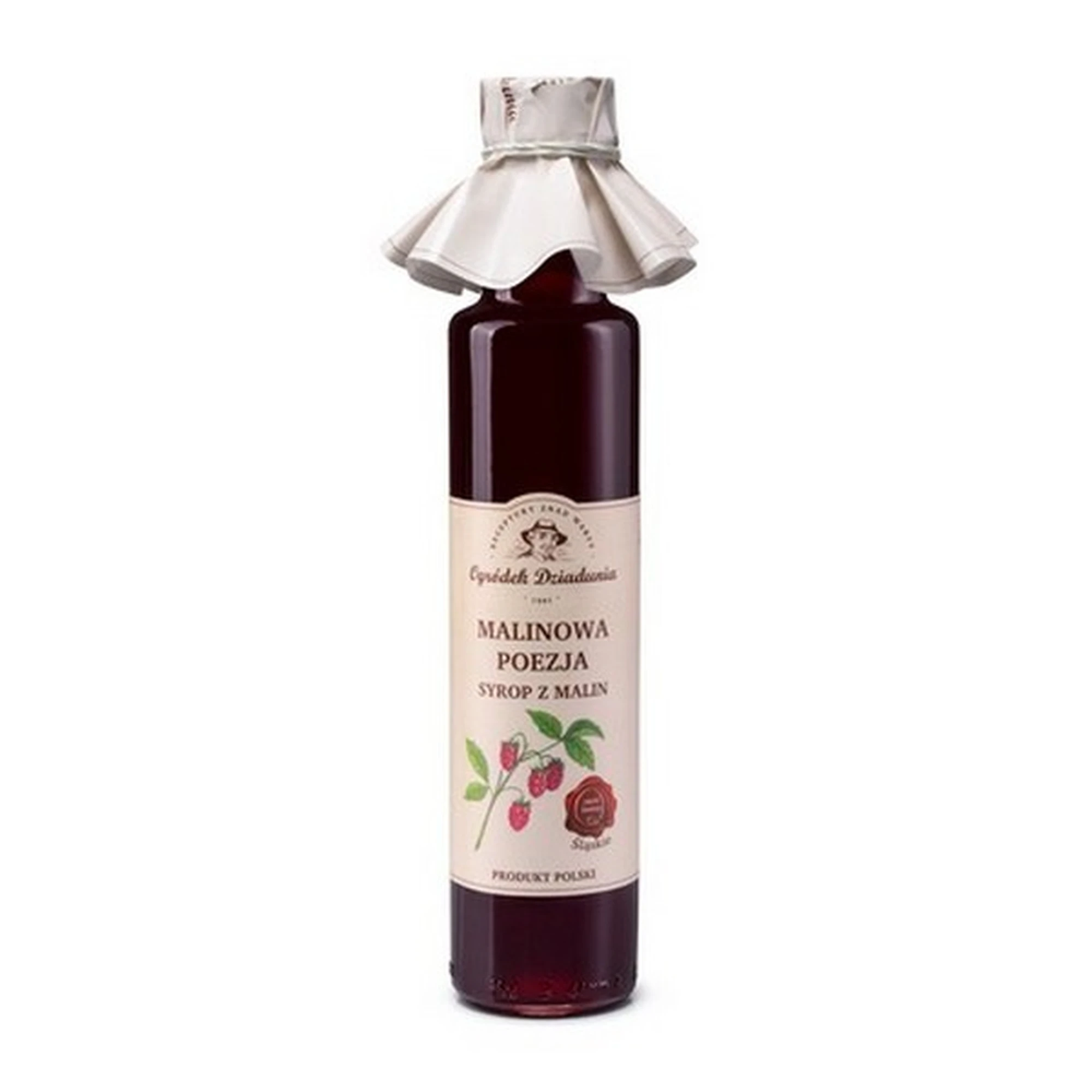 Ekologiczny syrop, przygotowany z dojrzałych malin, bez sztucznych dodatków i konserwantów.