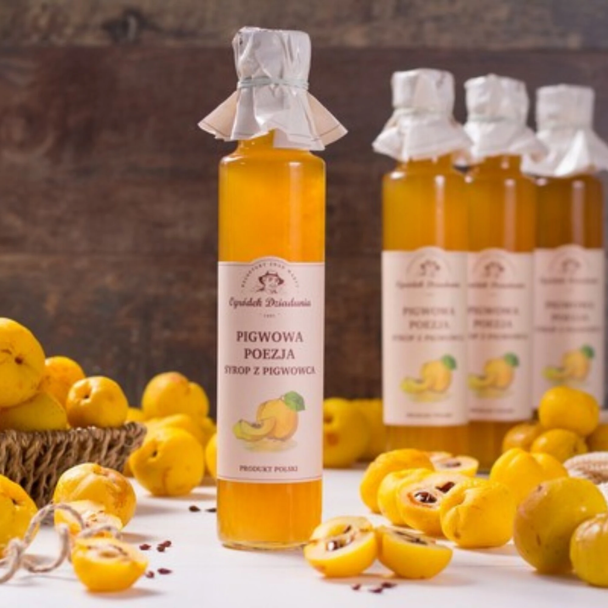 Syrop z pigwowca to naturalny i aromatyczny produkt, który powstaje z wyjątkowo bogatego w witaminy i składniki odżywcze owocu pigwowca. Do wyprodukowania 100 g naszego syropu używamy nie mniej niż 70 g świeżych owoców, co gwarantuje intensywny smak oraz wysoką jakość. Syrop ten jest źródłem witamin C, A oraz antyoksydantów, które wspierają odporność i dodają energii. Doskonale sprawdzi się jako dodatek do herbaty, naleśników czy deserów, a także jako naturalny słodzik do jogurtów i musli. Można z niego przygotować pyszne napoje, sosy do mięs czy galaretki. To produkt idealny dla miłośników zdrowej i naturalnej żywności, ceniących bogactwo smaków i wartości odżywczych.
