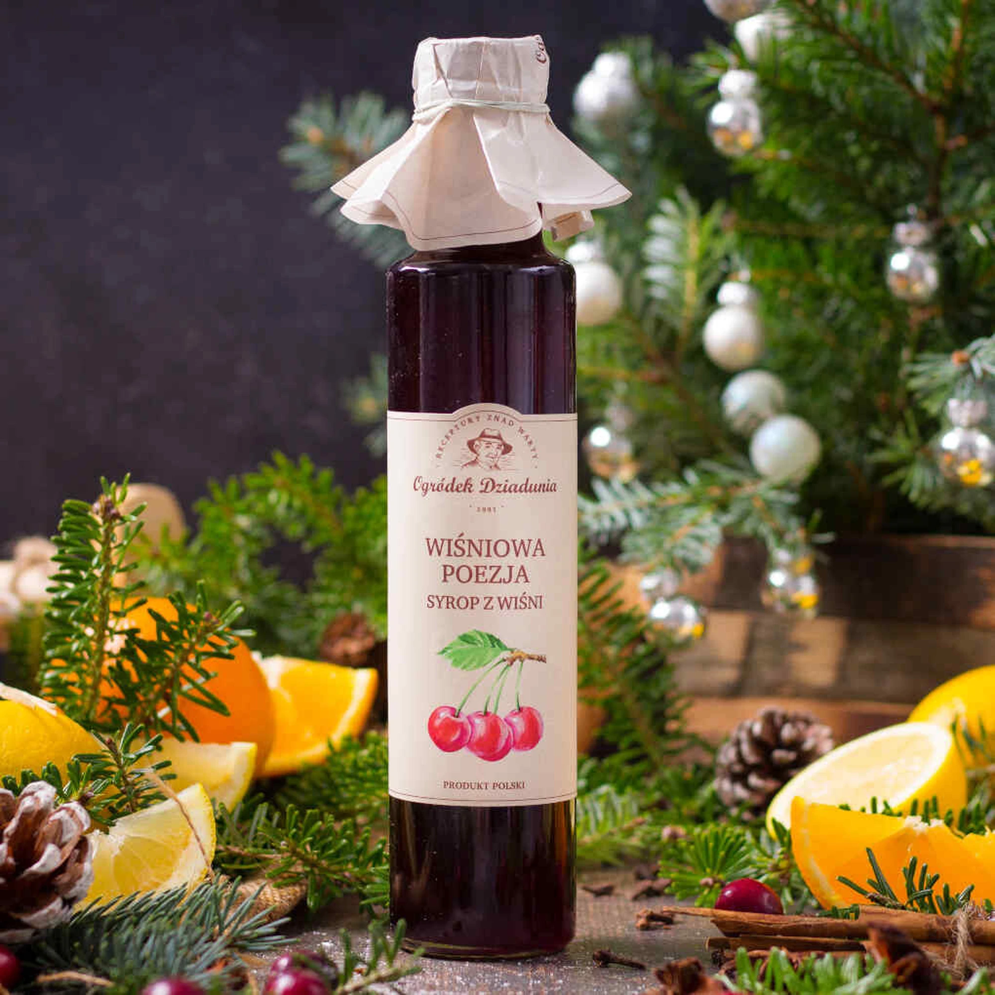 Naturalny syrop wiśniowy do napojów, deserów i koktajli. Wyrazisty smak wiśni w każdej kropli.