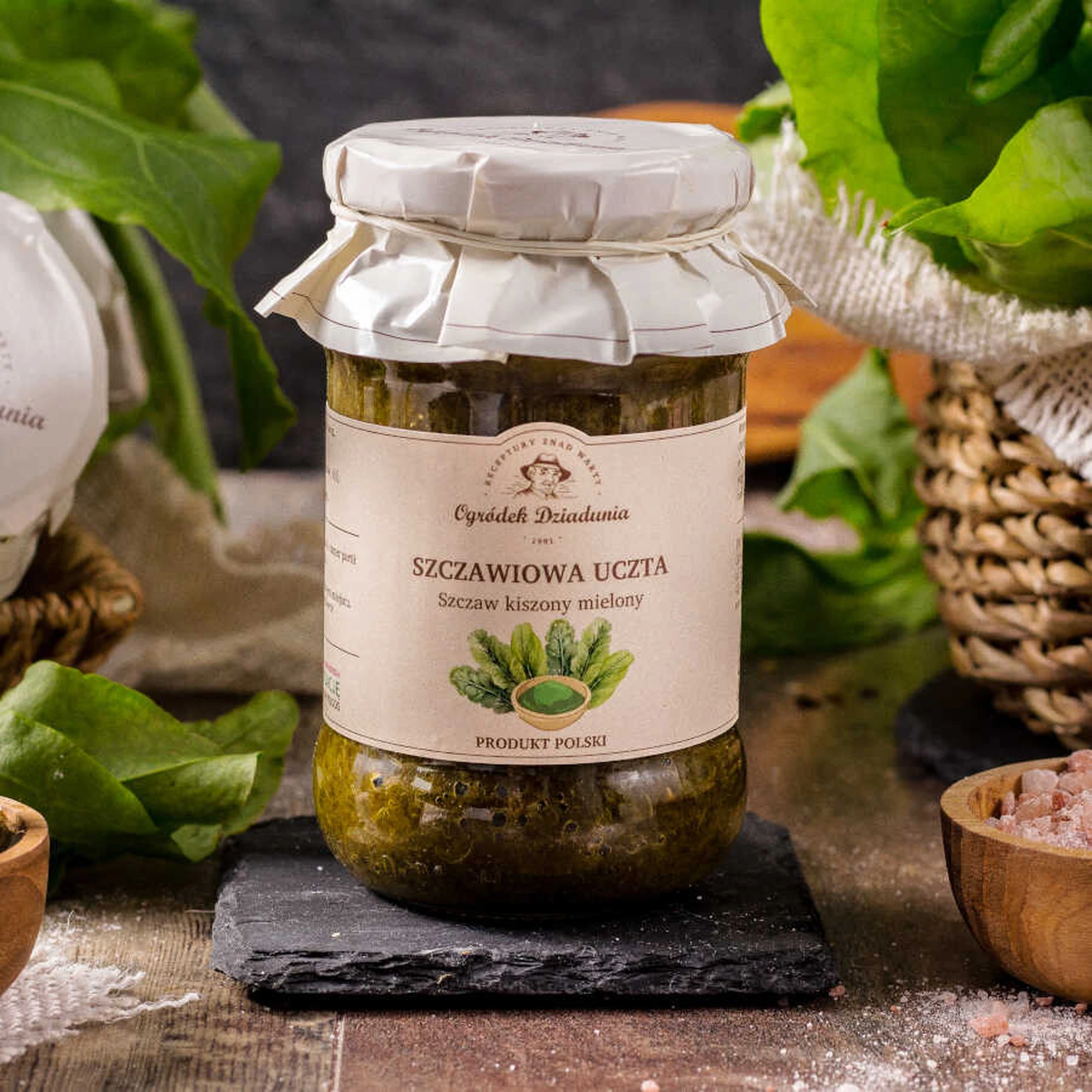 Szczaw kiszony mielony w słoiku to wygodne i smaczne rozwiązanie, które pozwala na błyskawiczne przygotowanie pysznej zupy szczawiowej oraz innych dań. Mielony szczaw, przygotowany z młodych liści szczawiu, starannie umytych i zmielonych na gładką konsystencję, gwarantuje pełnię smaku. Wybierając kiszony szczaw mielony, masz pewność, że otrzymujesz naturalny produkt o wyjątkowym aromacie, który doskonale komponuje się w wielu daniach. Szczaw jest idealny do przygotowania zupy szczawiowej, sosów do mięs i ryb, dipów, past kanapkowych, a także nadzienia do pierogów.