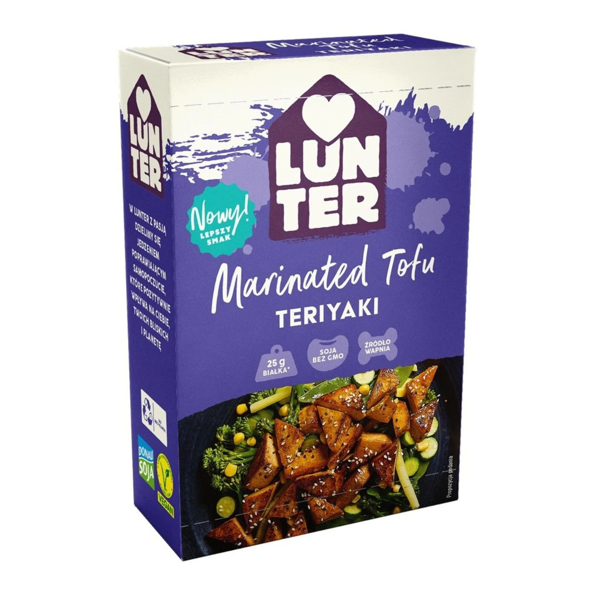 Tofu Teriyaki jest zamarynowane w wyśmienitym, słodkim sosie teriyaki, dzięki czemu egzotyczne arotmaty Japonii trafiają prosto na Twój talerz. Jest bogate w wysokowartościowe białko roślinne oraz wapń, który wspiera zdrowie kości i mięśni. Zawiera witaminy z grupy B, szczególnie B6 i B12, które korzystnie wpływają na układ nerwowy i metabolizm. Dzięki niskiej zawartości tłuszczów nasyconych i brakowi cholesterolu jest idealne dla osób dbających o zdrową dietę. Możesz je podawać z różnorodnymi warzywami, makaronami, ryżem lub w stir-fry, co pozwala na pełne wykorzystanie jego wartości odżywczych. Tofu Teriyaki dostarcza także cenny cynk i żelazo, wspierając układ odpornościowy. To smaczna i zdrowa propozycja na szybki posiłek, który jednocześnie odżywia organizm i cieszy podniebienie.