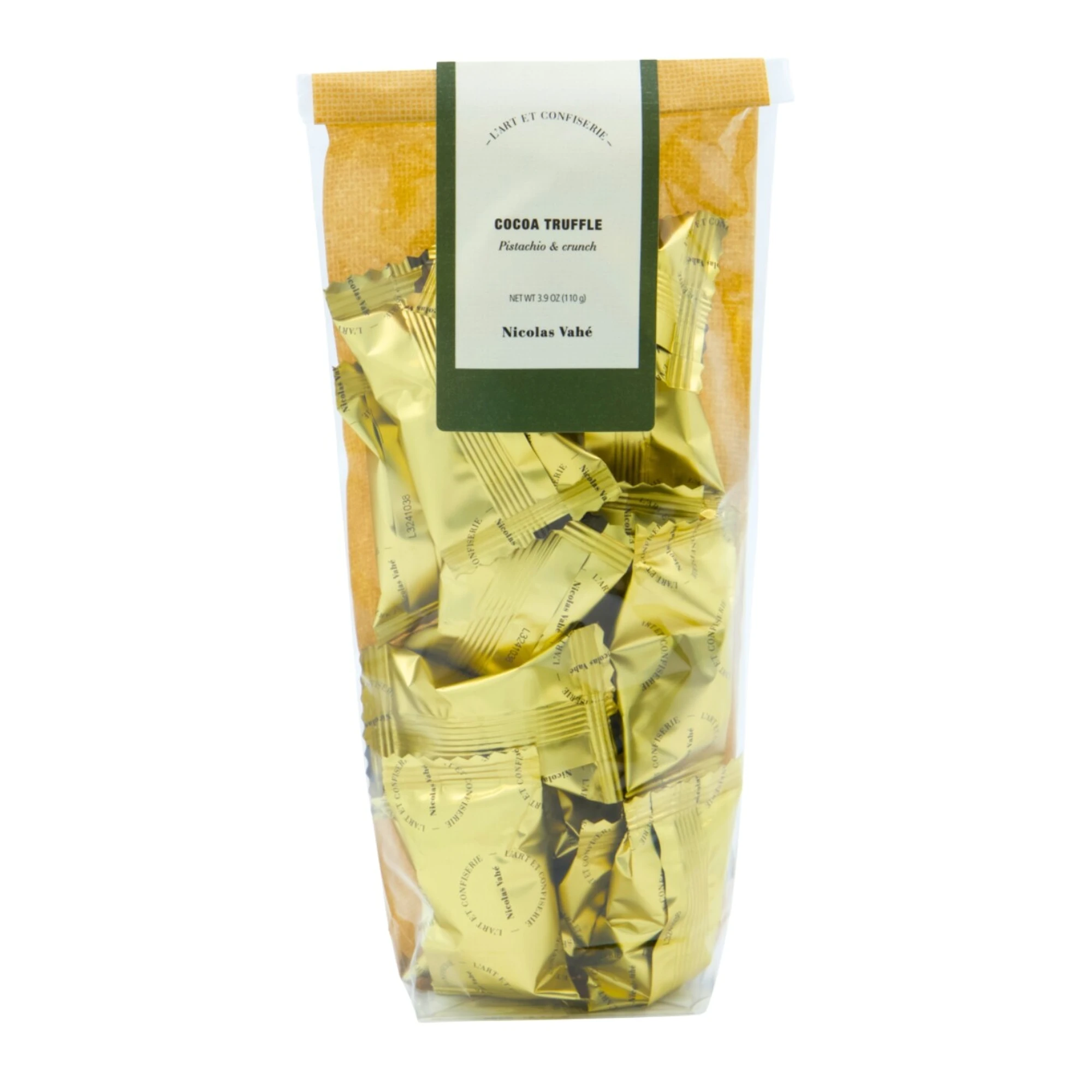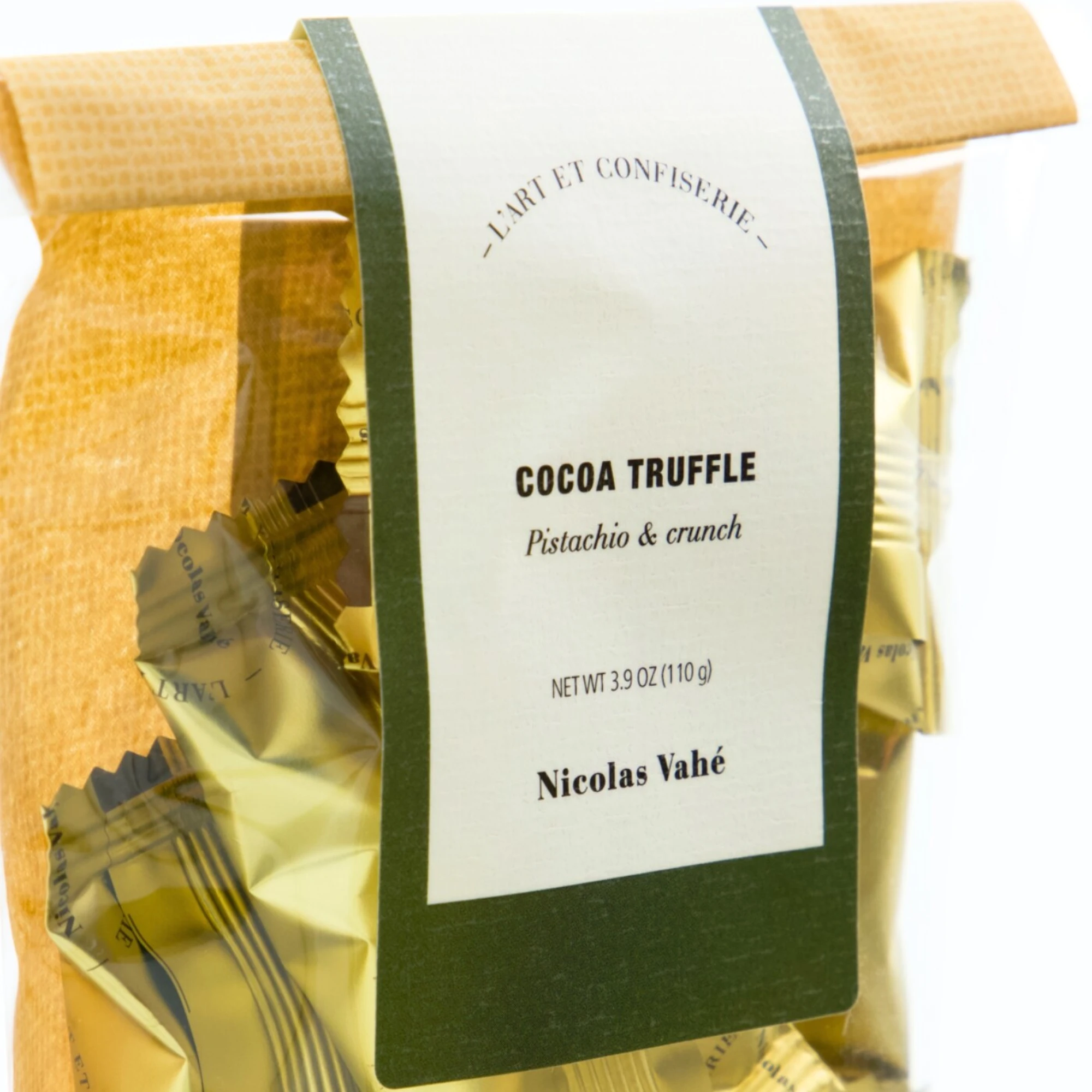 Trufle kakaowe z pistacjami słodka uczta, która zachwyca intensywnym smakiem czekolady i subtelną nutą orzechów. Aksamitna konsystencja trufli doskonale współgra z delikatną chrupkością pistacji, tworząc niezwykle harmonijne połączenie. Przygotowane według klasycznego francuskiego przepisu, te wykwintne praliny są doskonałym wyborem na wyjątkowe okazje, do kawiarni, hotelowych minibarków lub jako elegancki upominek. Z truflami Nicolas Vahé każda chwila staje się wyjątkowa.
