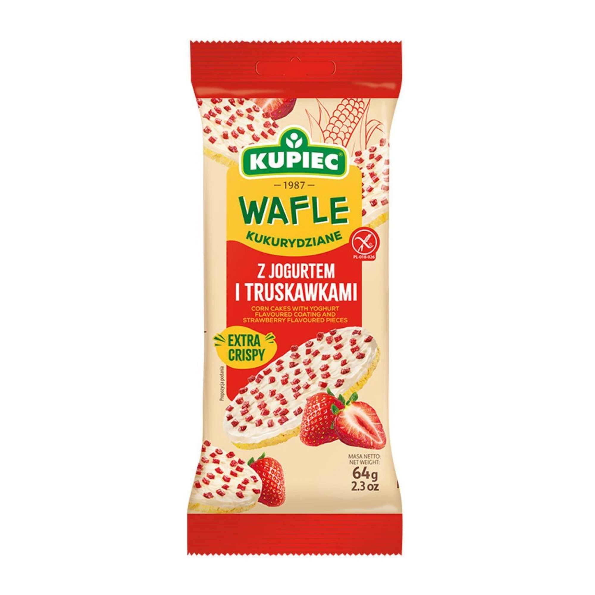Wafle kukurydziane z jogurtem i truskawkami to zdrowa i smaczna przekąska, idealna dla osób poszukujących produktu bezglutenowego. Wykonane z naturalnej kukurydzy, są lekkie i chrupiące, dostarczając cennych węglowodanów oraz błonnika wspierającego trawienie. Wzbogacone jogurtem, zawierają białko, wapń i witaminy z grupy B, co korzystnie wpływa na układ kostny i nerwowy. Truskawki dodają im naturalnej słodyczy oraz witaminy C, wzmacniając odporność. Te wafle można jeść same jako przekąskę lub podać z jogurtem, owocami czy miodem, tworząc pyszne i zdrowe desery. Z tego produktu można przygotować również lekkie muffinki, desery na bazie jogurtu lub zdrowe śniadania. To idealny wybór dla osób ceniących zdrowy styl życia i bezglutenową dietę.