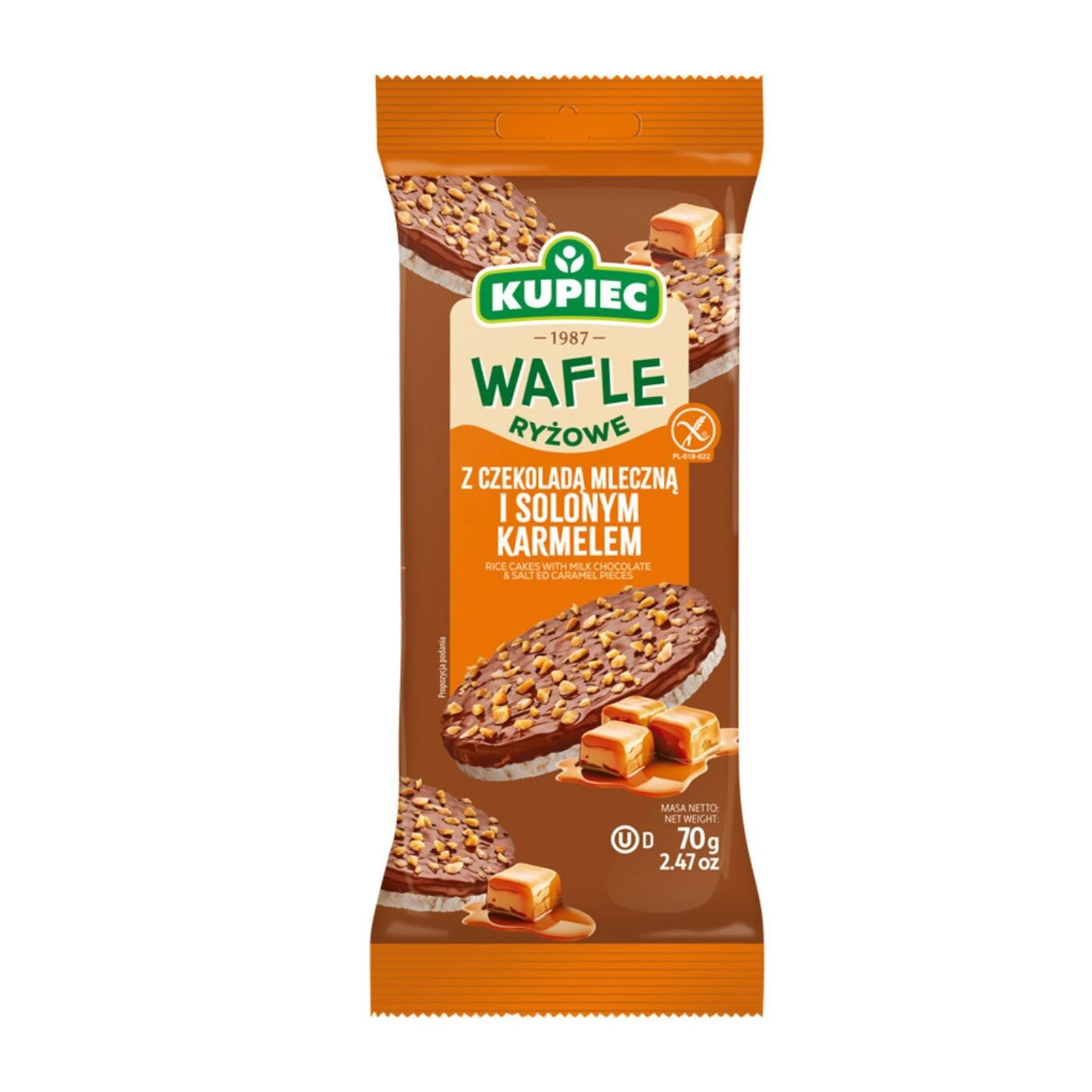 Wafle ryżowe z czekoladą mleczną i karmelem to pyszny, lekki i bezglutenowy przekąskowy produkt, idealny dla osób o wrażliwości na gluten oraz dla wszystkich miłośników słodkości. Produkty te są bogate w węglowodany, dostarczając energii na cały dzień, a jednocześnie mają niską zawartość tłuszczu. Doskonale sprawdzają się jako słodka przekąska solo, ale można je także używać jako bazę do deserów, np. do przygotowania chrupiących ciast czy musów. Z wafli można także zrobić pyszne desery na zimno, np. przekładając je kremem i chłodząc w lodówce. Idealnie sie komponują w pucharku z lodami. Ich uniwersalność i smak sprawiają, że będą świetnym dodatkiem do każdej domowej kuchni.